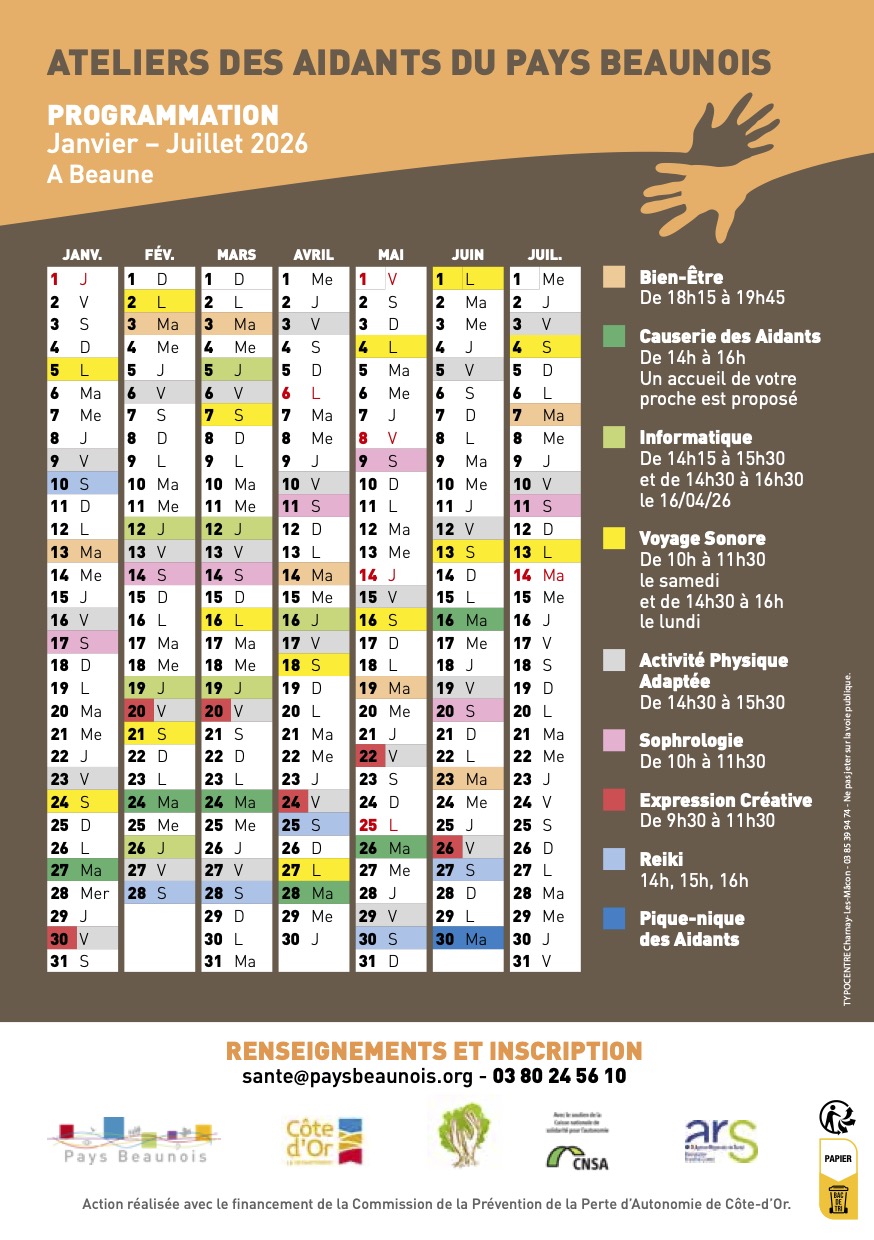 Pays Beaunois - Le programme d’ateliers dédiés aux aidants du 1er semestre 2026