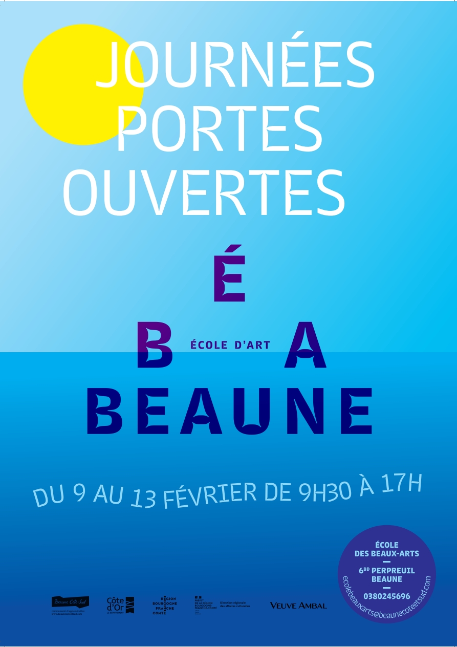 Les Journées Portes Ouvertes de l’École des Beaux-Arts de Beaune Côte & Sud se dérouleront du lundi 9 au vendredi 13 février, de 9 h 30 à 17 h, au 6 boulevard Perpreuil à Beaune. Un choix assumé : proposer non pas une journée unique, mais une semaine complète, pendant les vacances scolaires, afin de permettre aux lycéens de toute la Bourgogne-Franche-Comté de se déplacer plus facilement.