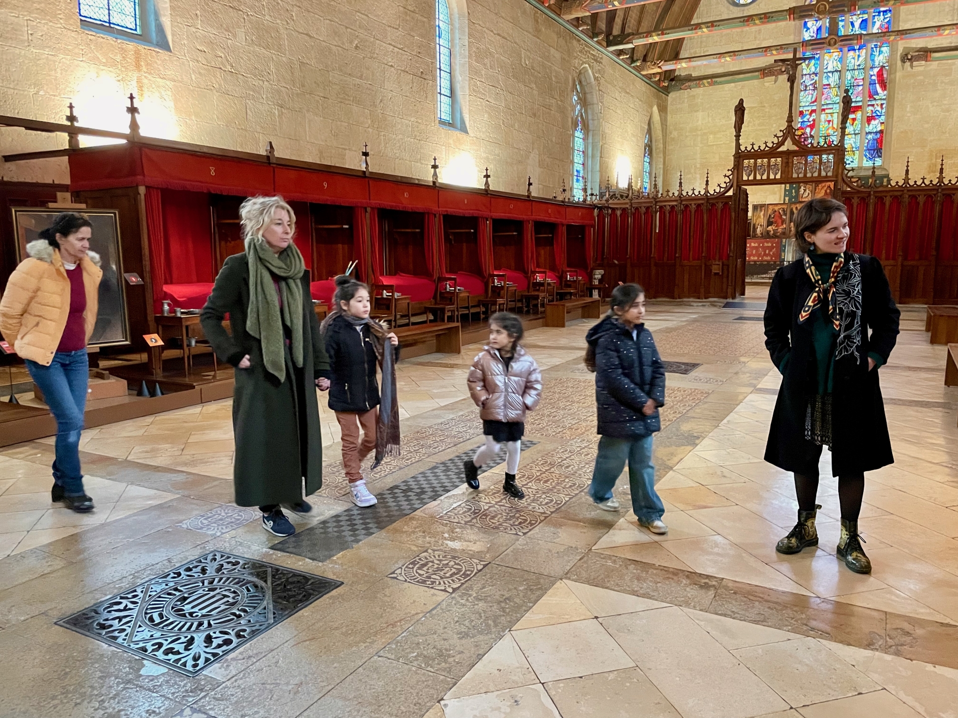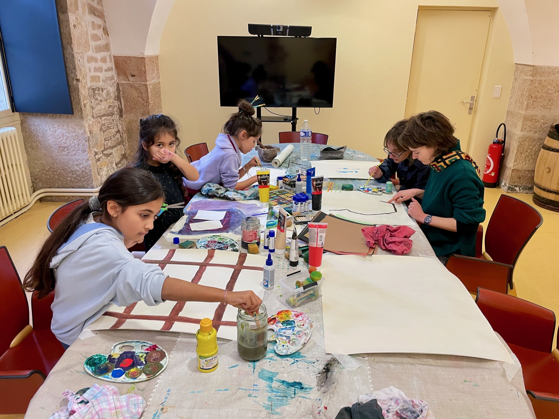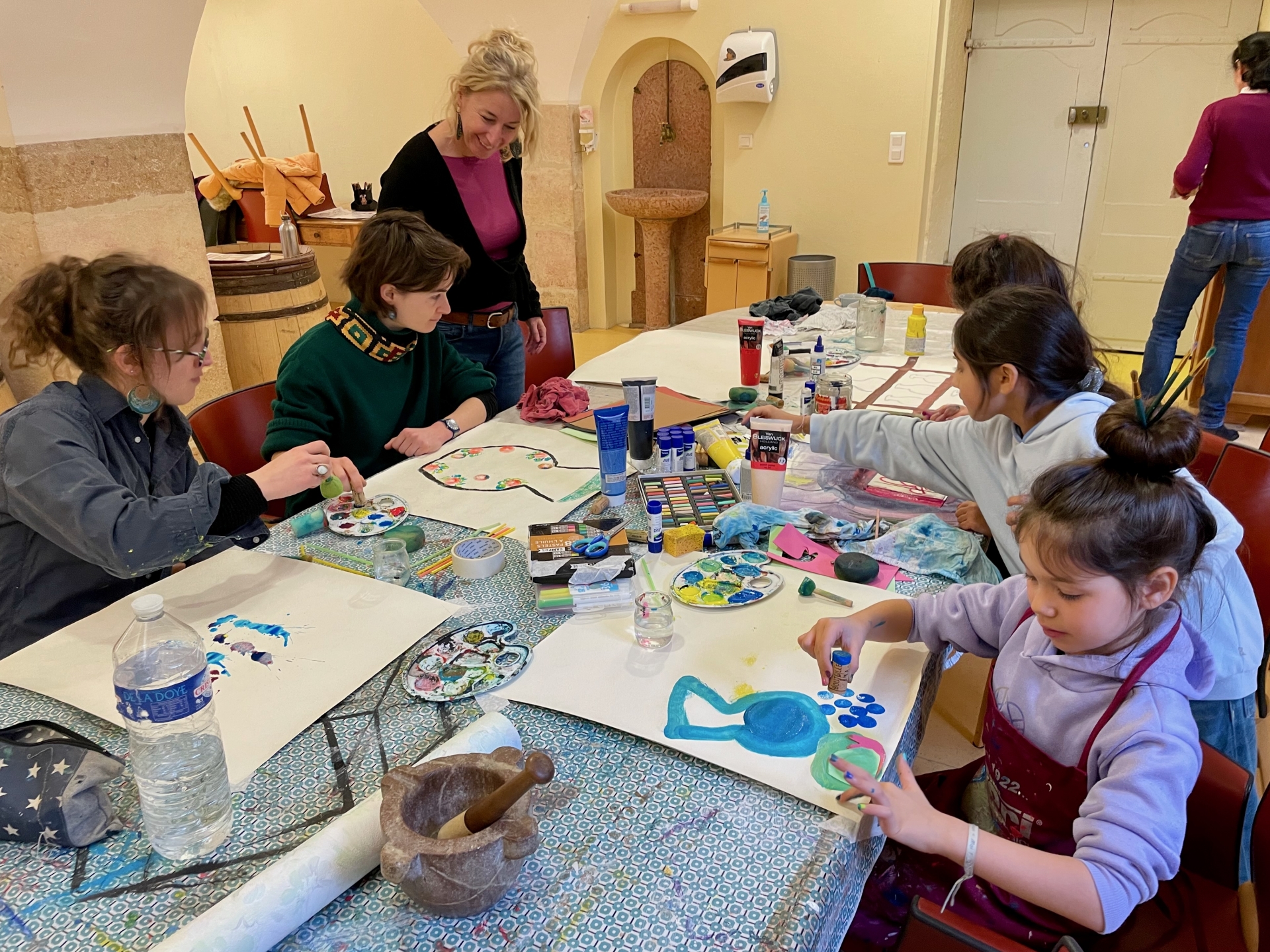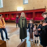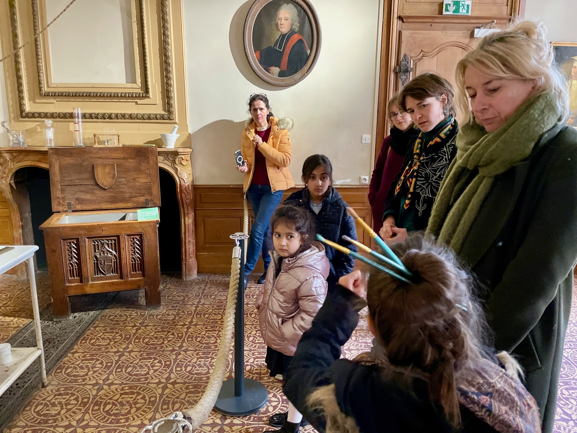 Ce mercredi matin, la séance se tenait dans un lieu chargé d’histoire en termes de soin : l’Hôtel-Dieu de Beaune. Animée par Stéphanie Mutin, art-thérapeute à Beaune, elle a accueilli un petit groupe d’enfants. D’ordinaire, les séances ont lieu dans son cabinet, mais le cadre hospitalier prend ici tout son sens. Avant de créer, les enfants ont participé à une visite guidée menée par Chloé, guide-conférencière. Salle des Pôvres, ancienne pharmacie, vocation fondatrice du site : celle d’un hôpital pensé pour soigner les plus démunis. Un choix loin d’être anodin, autant de repères qui donnent du sens à la démarche. Puis vient le temps de la création.