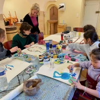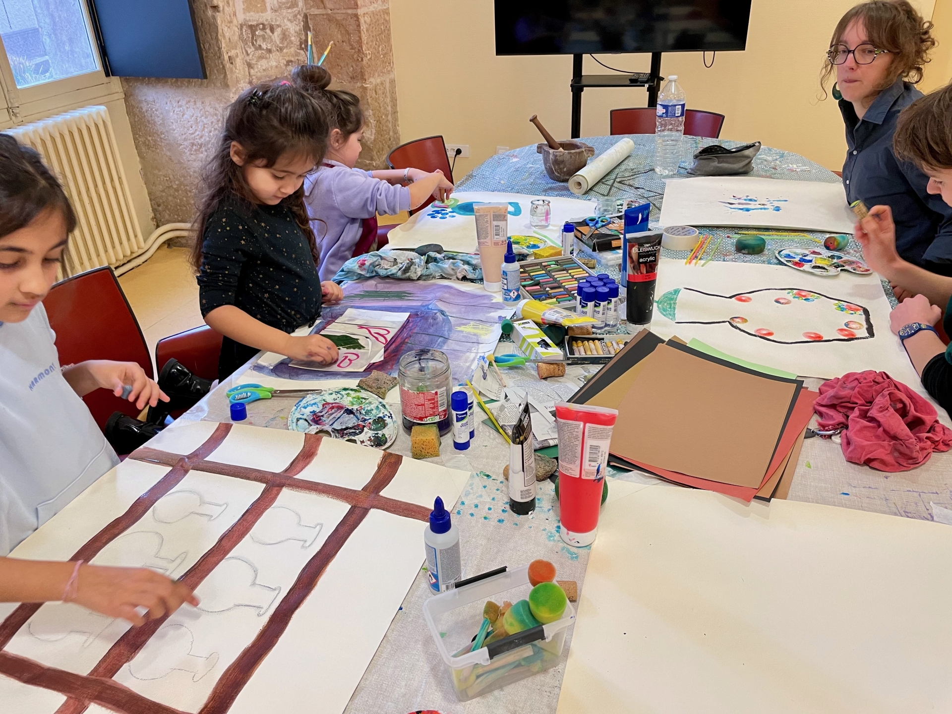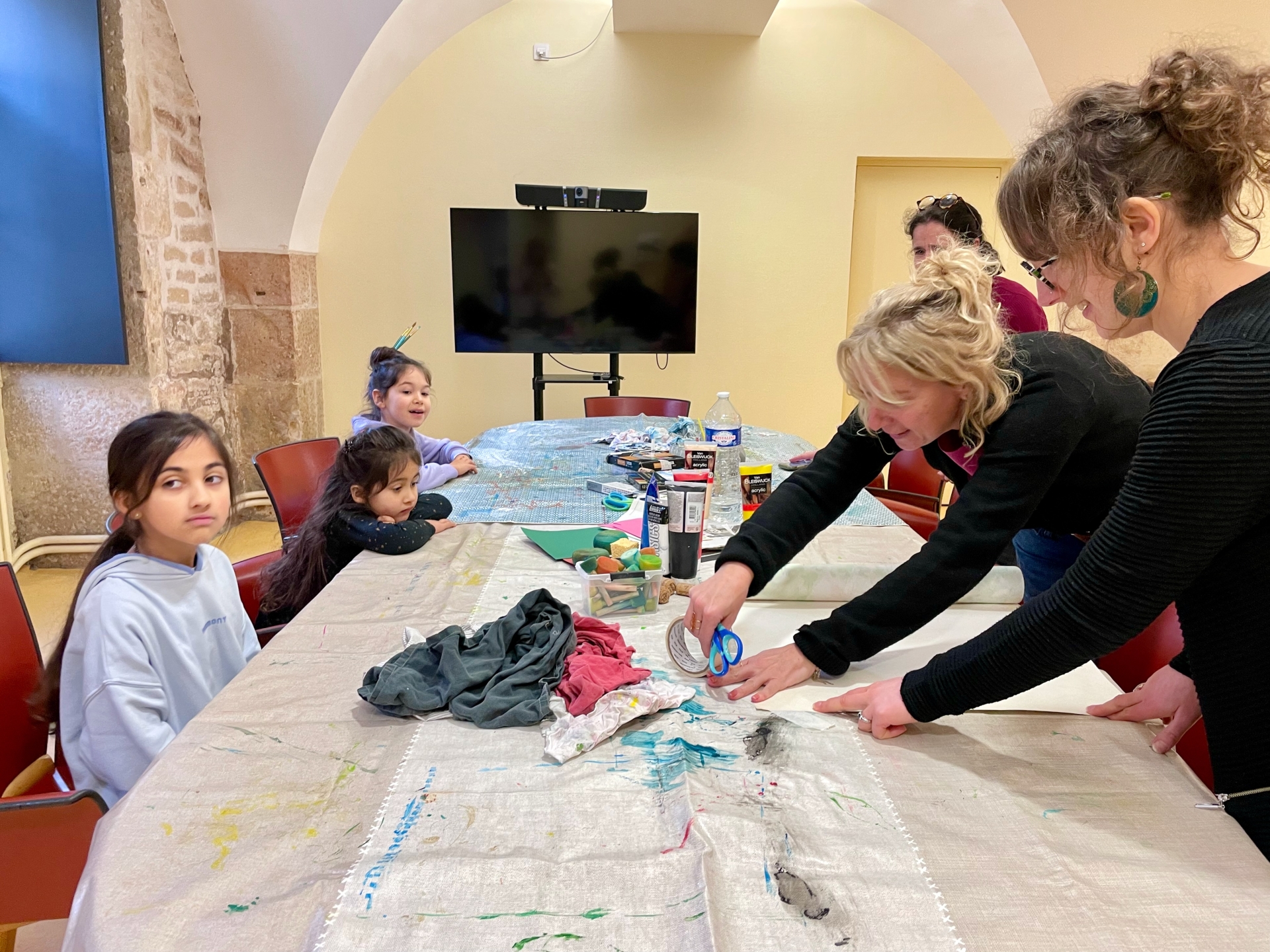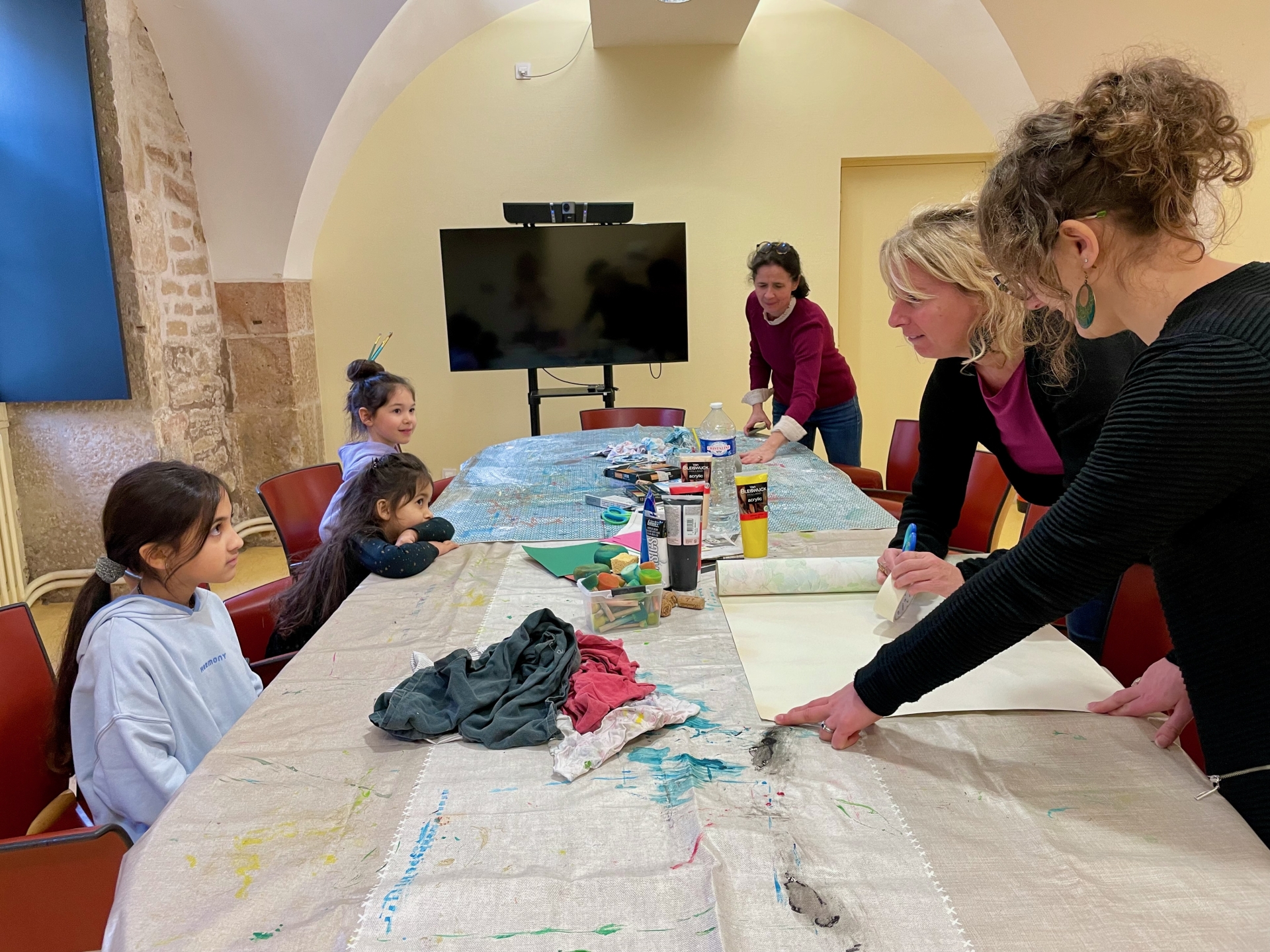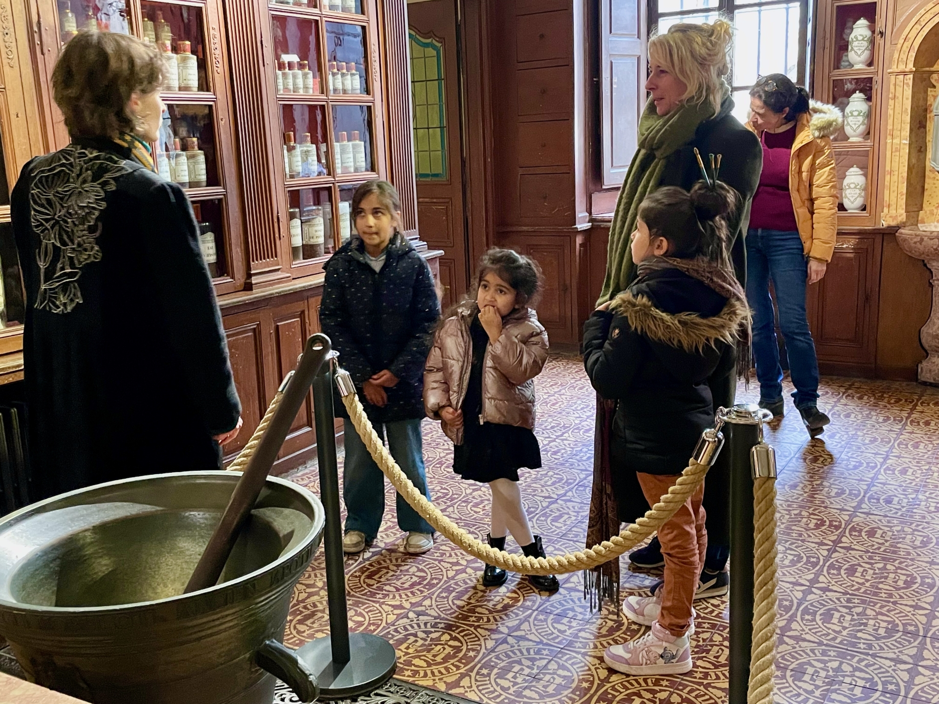 Ce mercredi matin, la séance se tenait dans un lieu chargé d’histoire en termes de soin : l’Hôtel-Dieu de Beaune. Animée par Stéphanie Mutin, art-thérapeute à Beaune, elle a accueilli un petit groupe d’enfants. D’ordinaire, les séances ont lieu dans son cabinet, mais le cadre hospitalier prend ici tout son sens. Avant de créer, les enfants ont participé à une visite guidée menée par Chloé, guide-conférencière. Salle des Pôvres, ancienne pharmacie, vocation fondatrice du site : celle d’un hôpital pensé pour soigner les plus démunis. Un choix loin d’être anodin, autant de repères qui donnent du sens à la démarche. Puis vient le temps de la création.