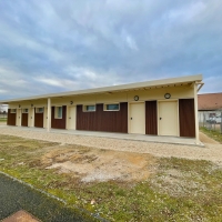 Implanté devant l’unique terrain synthétique du complexe sportif de Vignoles, le nouveau bâtiment a été conçu sous forme de modules en acier, habillés d’un bardage composite imitation bois. Une isolation thermique par l’extérieur permet une meilleure performance énergétique tout en assurant une intégration harmonieuse dans l’environnement existant.
