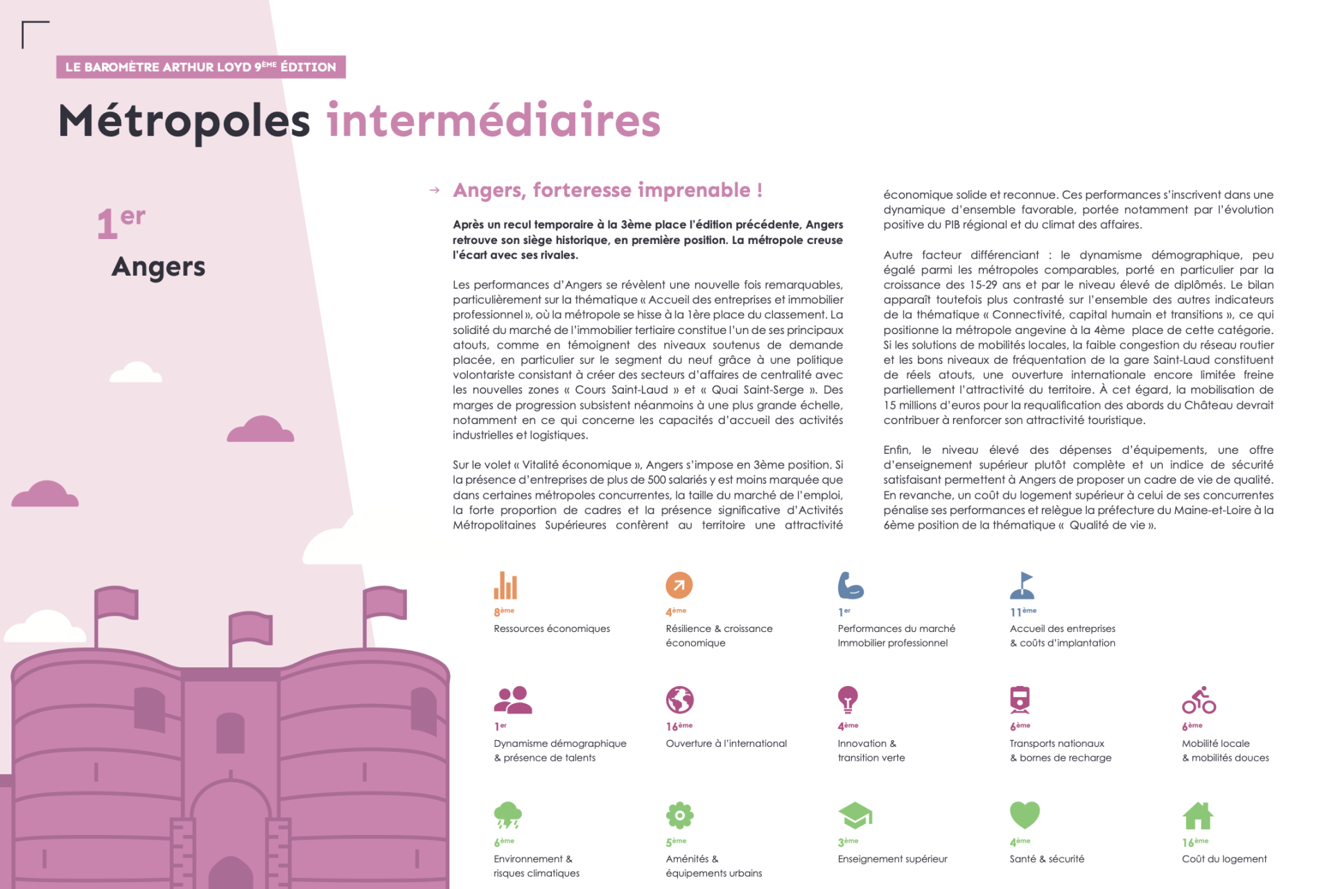 Angers s’impose cette année, saluée pour son équilibre entre dynamisme économique, qualité de vie et coût du logement maîtrisé.