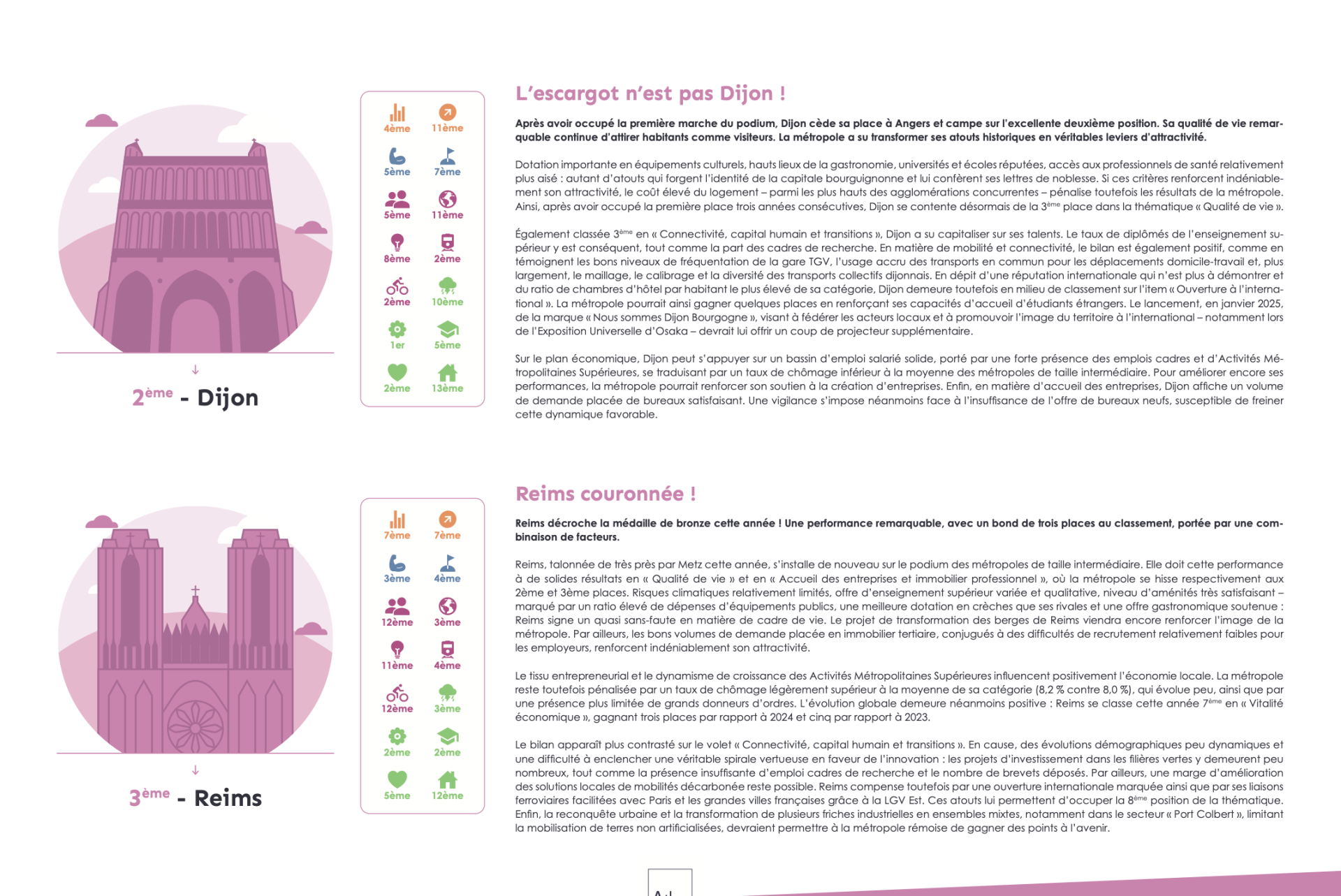 Dijon, longtemps leader de cette catégorie lors des précédentes éditions, se classe désormais 2ᵉ, conservant néanmoins un positionnement très élevé.