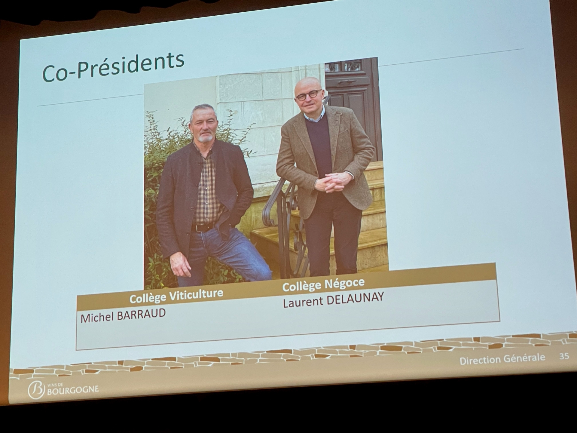 À l’issue de l’Assemblée générale, les familles viticulture et négoce ont proposé leurs représentants à la co-présidence. Michel Barraud a été élu co-président pour la filière viticulture, aux côtés de Laurent Delaunay, reconduit pour un second mandat au titre du négoce.