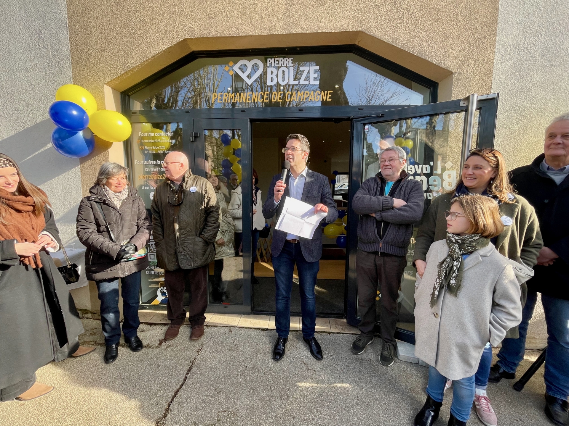À un peu plus d’un mois des élections municipales et communautaires des 15 et 22 mars 2026, Pierre Bolze et la liste « L’avenir de Beaune avec vous » ont inauguré, samedi, leur permanence de campagne avenue de la République. Un lieu présenté comme un espace d’écoute et de participation citoyenne, au cœur d’une campagne revendiquée « de terrain ».