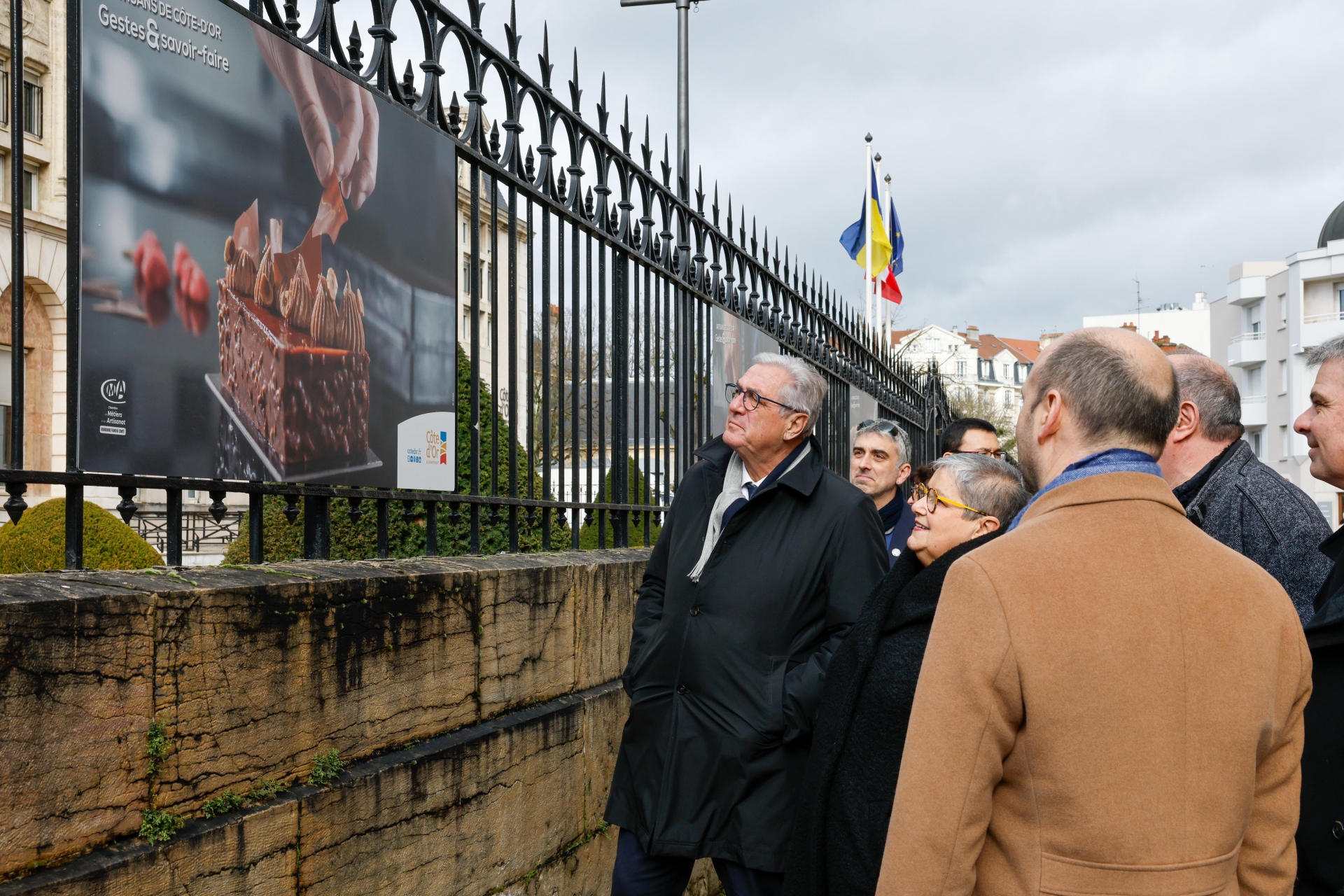 L’exposition « Aux gestes des artisans », installée sur les grilles de la Cité Henry Berger à Dijon, a été inauguré vendredi 6 février en présence du Président du Conseil départemental François Sauvadet, du Président de la Chambre de Métiers et de l’Artisanat Yves Bard, des élus, des artisans et photographes auteur de l’exposition.