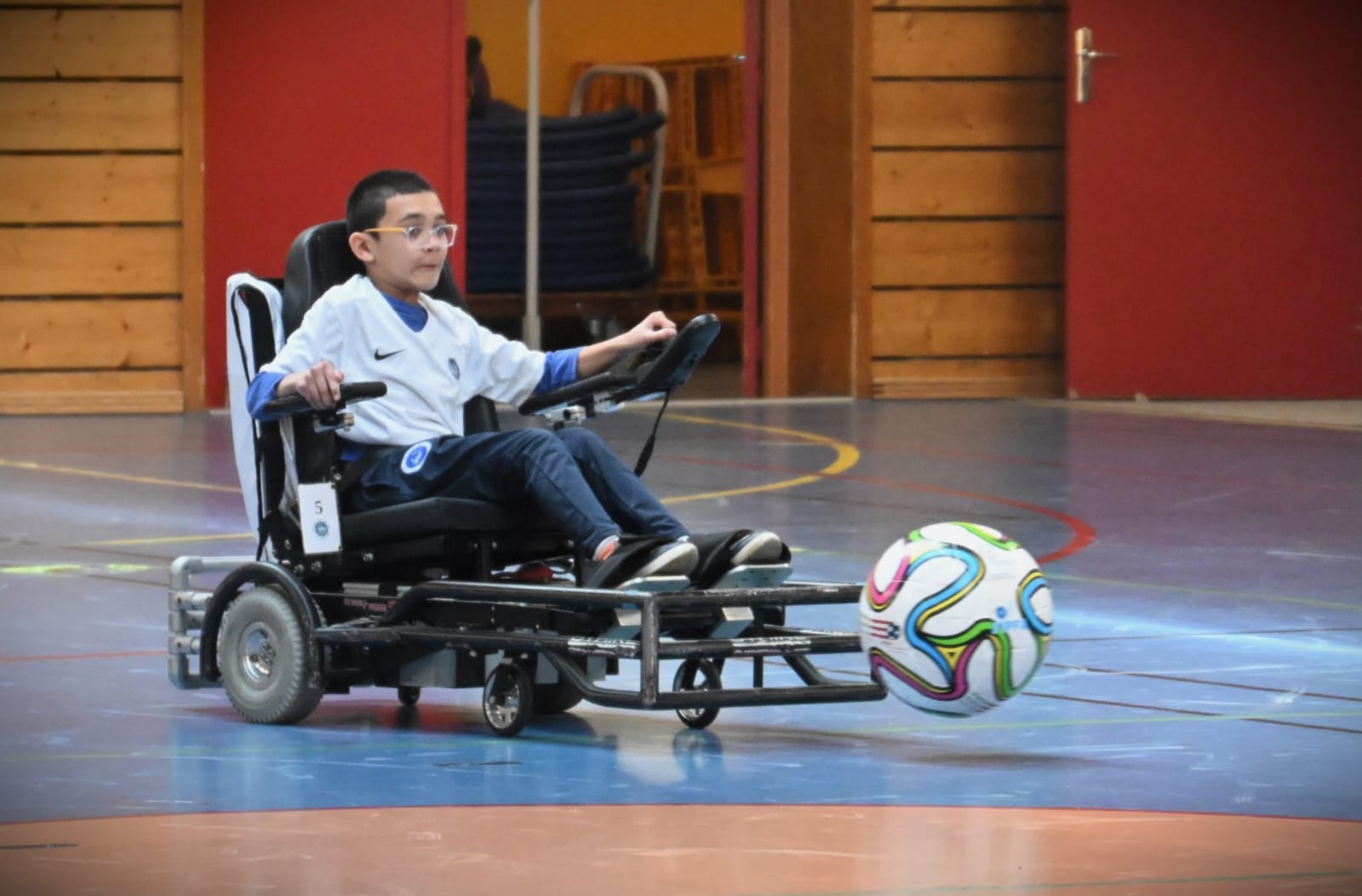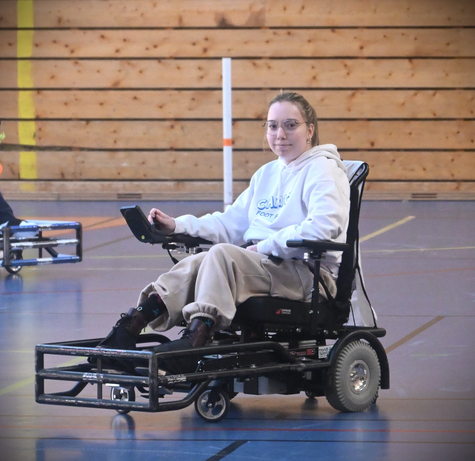 Le foot fauteuil se joue en gymnase, en équipes de quatre joueurs, chacun évoluant dans un fauteuil électrique équipé d’un pare-chocs permettant de frapper la balle. Les contacts sont strictement réglementés, et la règle du deux contre un — interdisant à deux joueurs de la même équipe de presser simultanément le porteur du ballon — garantit un jeu fluide, technique et stratégique. Le ballon, plus grand qu’au football traditionnel, favorise les passes longues et les frappes puissantes.