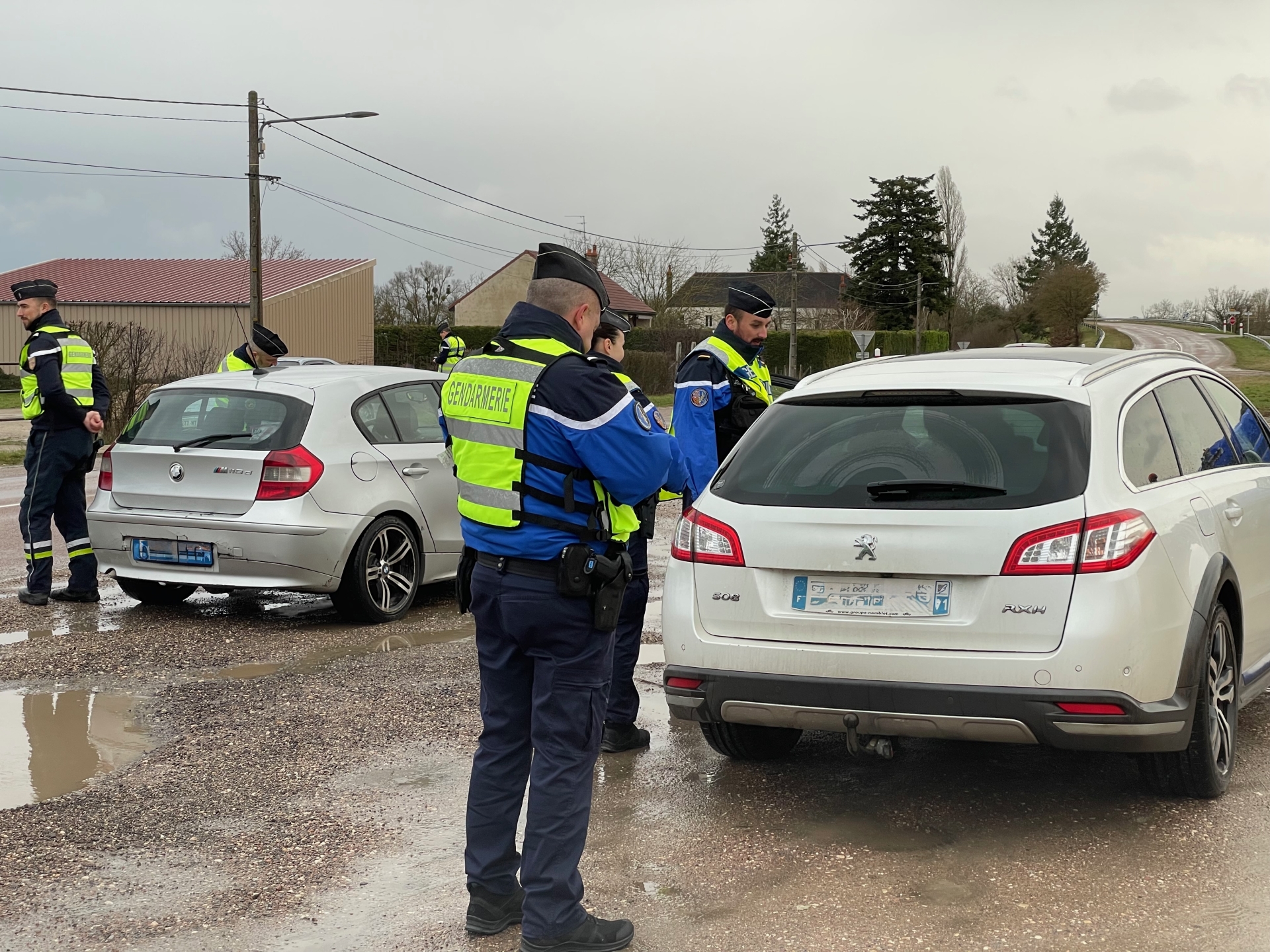 De 16 h à 18 h, les gendarmes de Saône-et-Loire et de Côte-d’Or ont déployé simultanément deux postes de contrôle sur des axes majeurs de circulation situés à la limite des deux départements. Le premier dispositif a été installé à Corpeau dès 16 heures, avant de se déplacer à partir de 17 heures sur la commune de Demigny, route de Beaune.