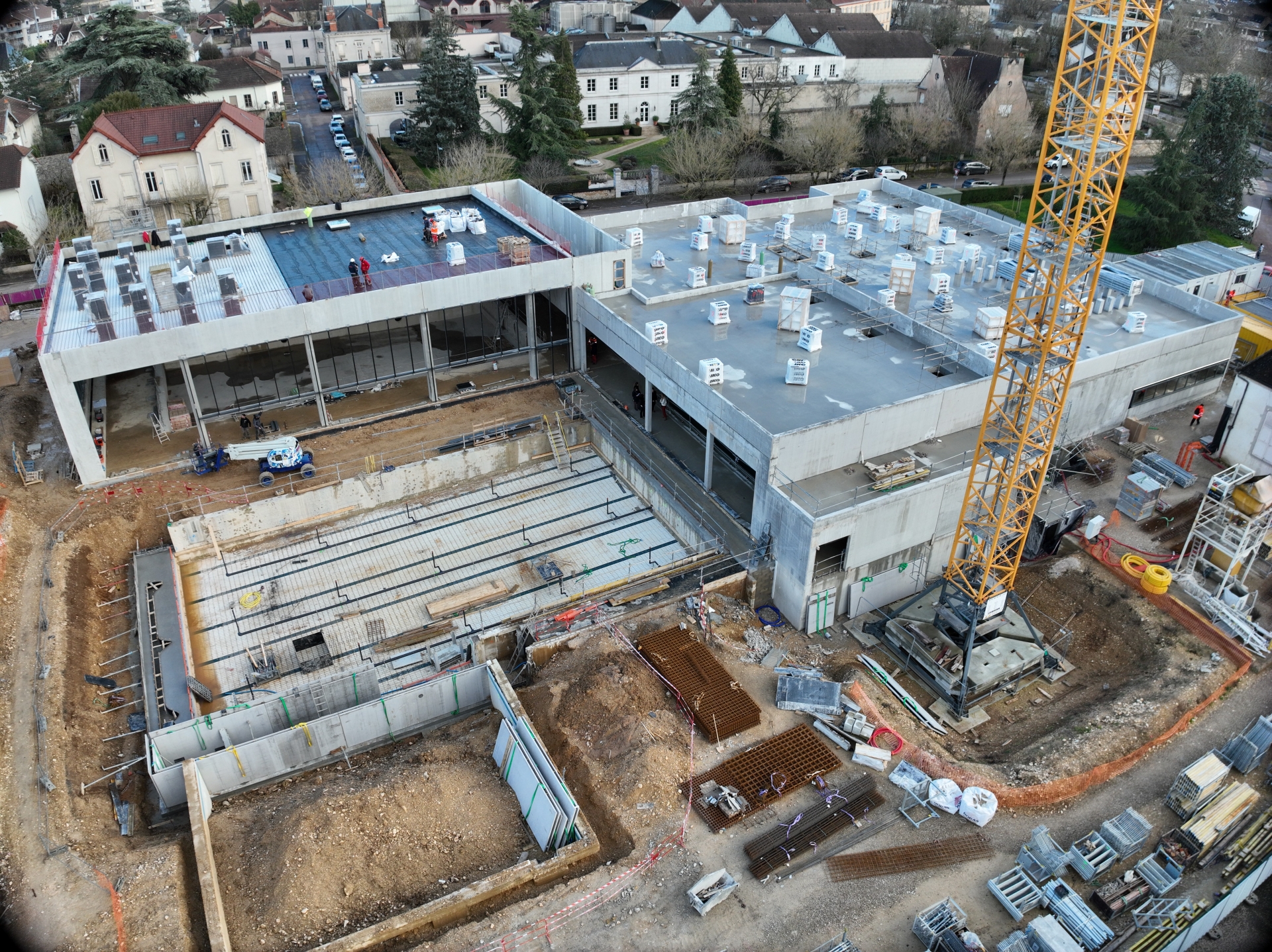 Les travaux du futur centre nautique de Beaune prennent de la hauteur. Grâce à des prises de vues réalisées par drone, le chantier se dévoile sous un angle spectaculaire, permettant de mesurer l’ampleur de l’équipement en cours d’aménagement.