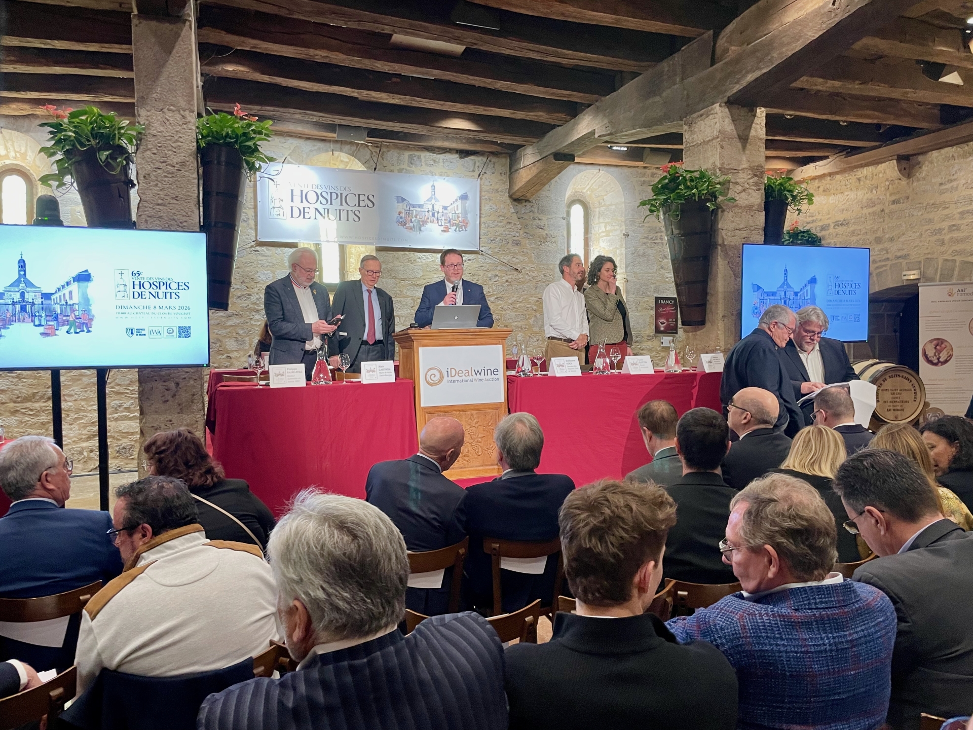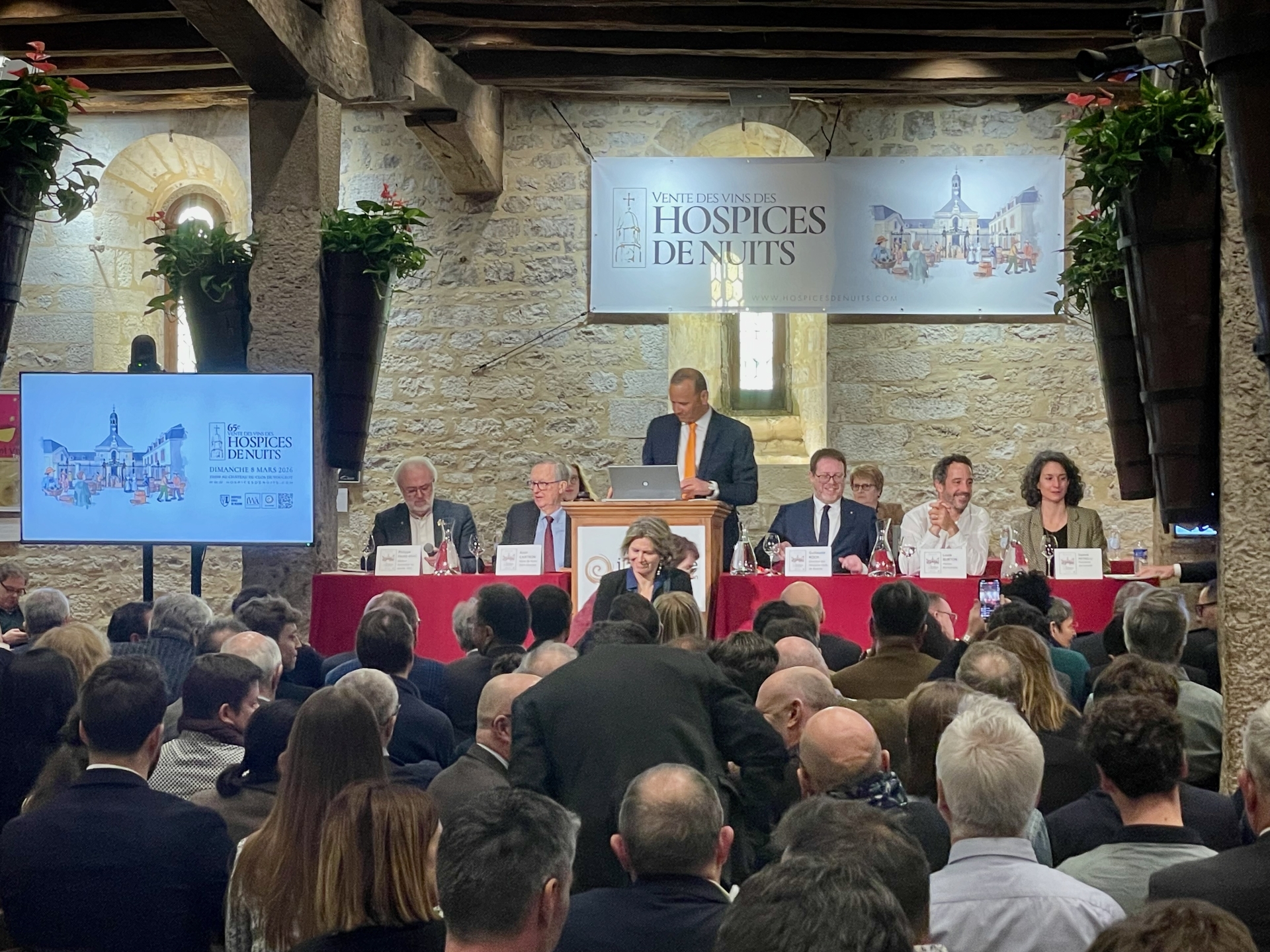 La 65e Vente des Hospices de Nuits-Saint-Georges a débuté ce dimanche 8 mars à 15 heures sous les voûtes du Château du Clos de Vougeot. Organisée pour la deuxième année consécutive par iDealwine, cette vente aux enchères viticole attire amateurs, professionnels du vin et collectionneurs venus suivre les adjudications.