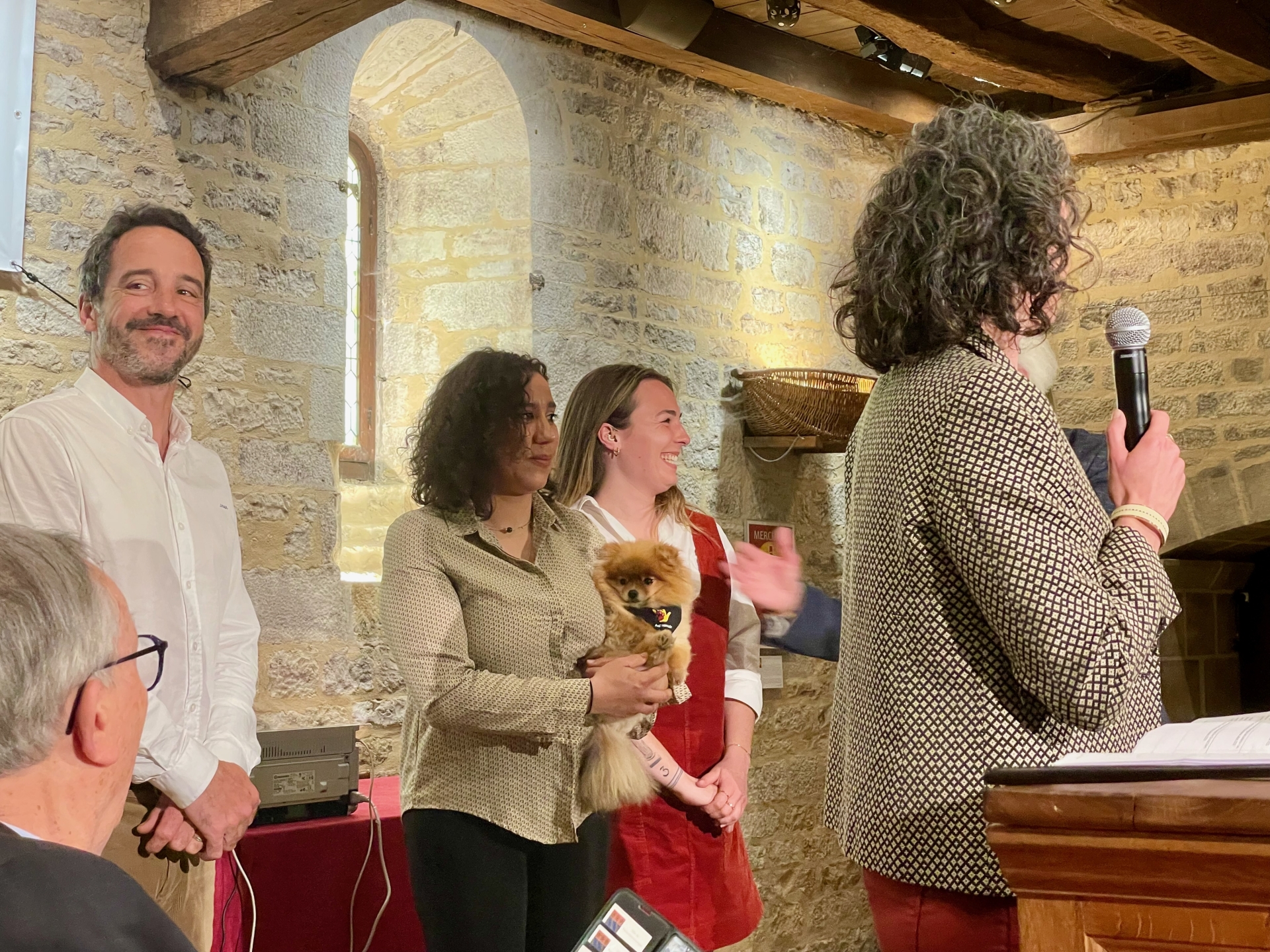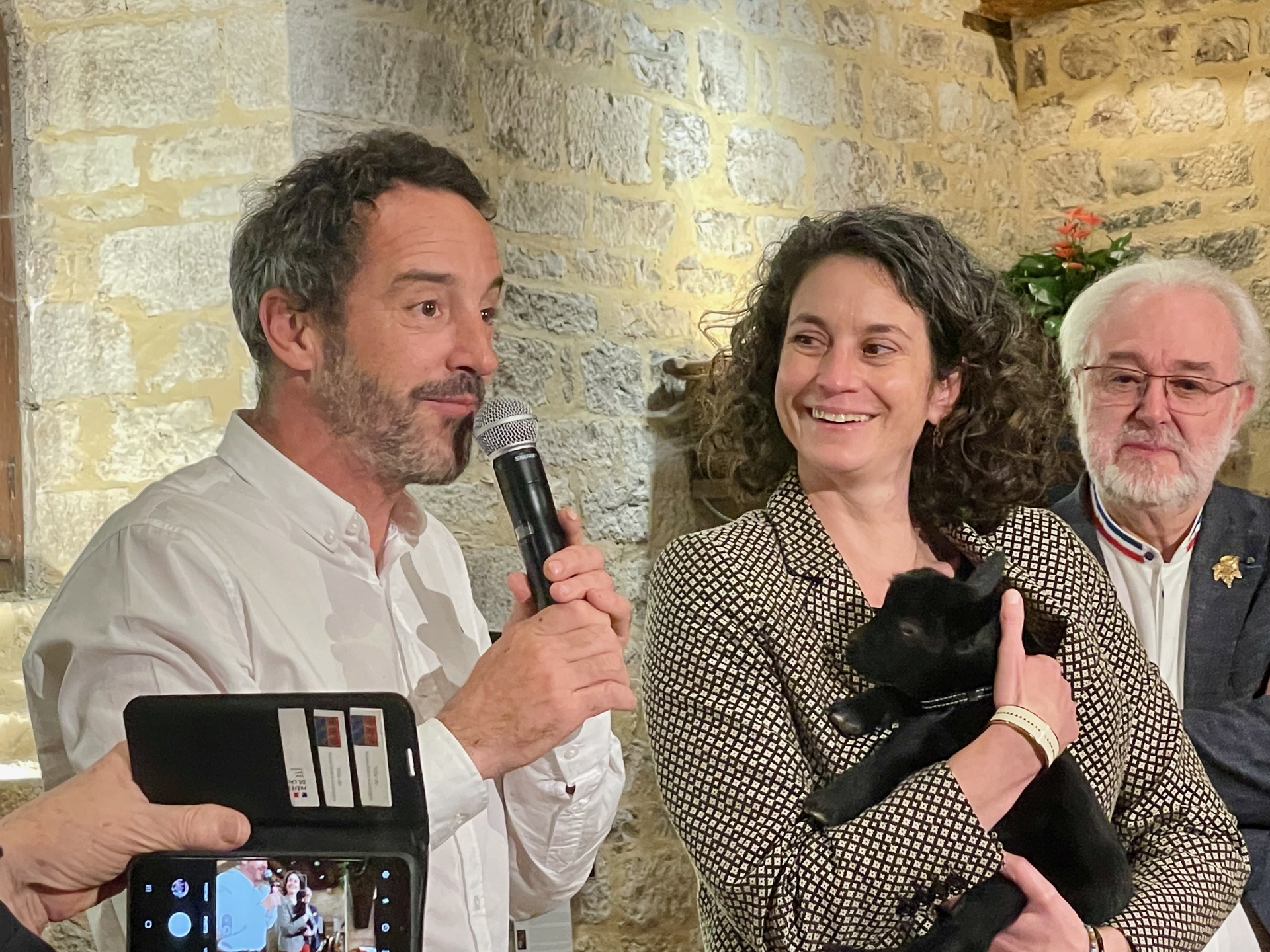 Le produit de cette pièce de charité est destiné à l’association Ani’nomad, spécialisée dans la médiation animale. Sa directrice, Claire Mongeot, était présente lors de l’événement, accompagnée d’un chevreau baptisé “Nuits”, né dans la nuit, et d’un petit chien, symboles vivants de cette pratique thérapeutique.