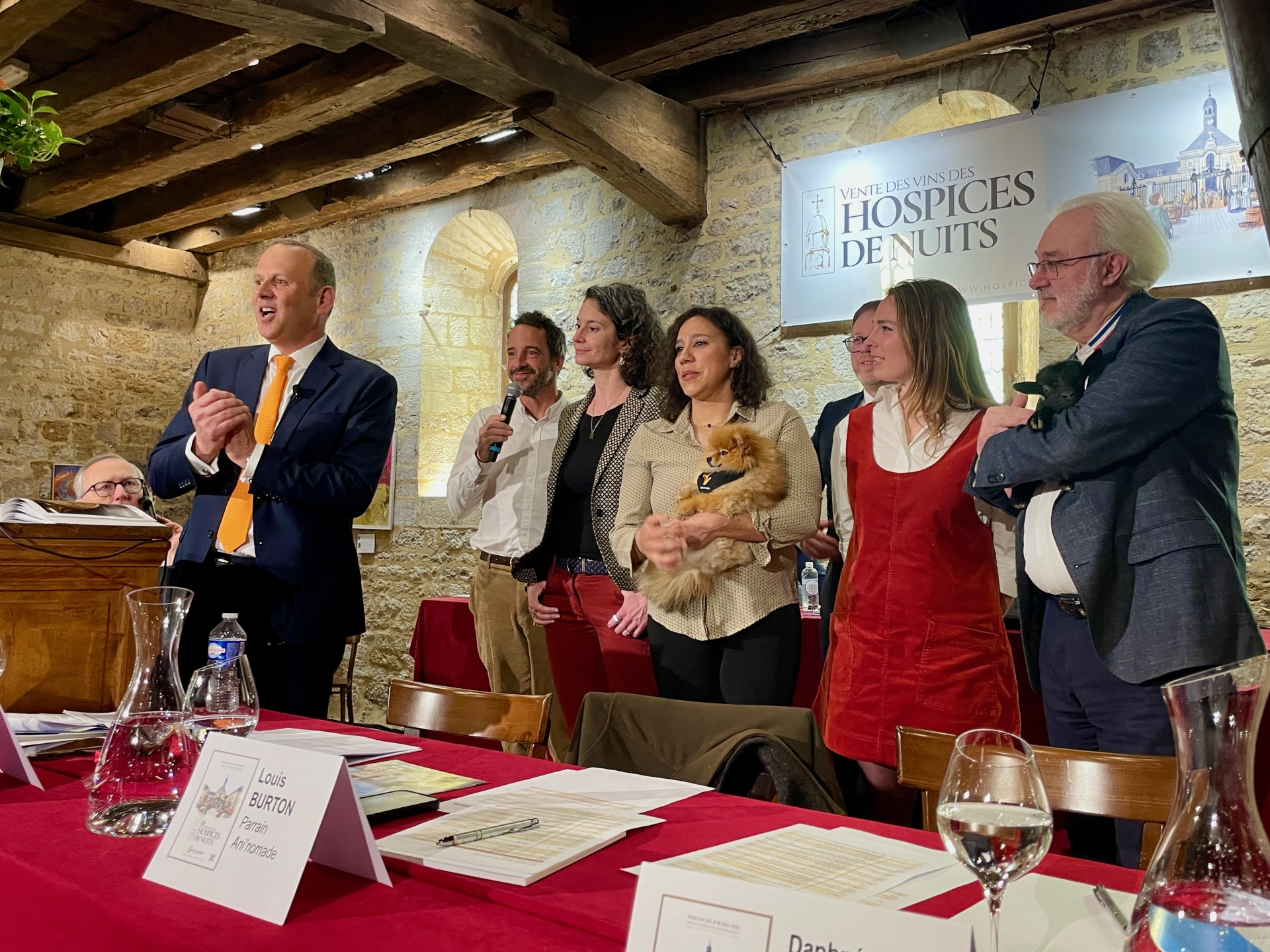 Comme chaque année, une pièce de charité dite « Cuvée des Bienfaiteurs », était vendue au profit d’une association caritative ; il s’agissait d’une pièce unique, un nuits-saint-georges 1er Cru (assemblage des neuf 1er Crus du domaine). Le produit de la pièce, vendue par souscription - sans enchères -, est destiné à financer l’association Ani’nomade. Implantée en Côte-d’Or et fondée en 2010, cette association est pionnière dans le domaine de la médiation animale. Elle développe des actions auprès de publics variés – personnes âgées, personnes en situation de handicap, patients ou publics fragilisés – en s’appuyant sur les bienfaits du lien entre l’Homme et l’animal.
