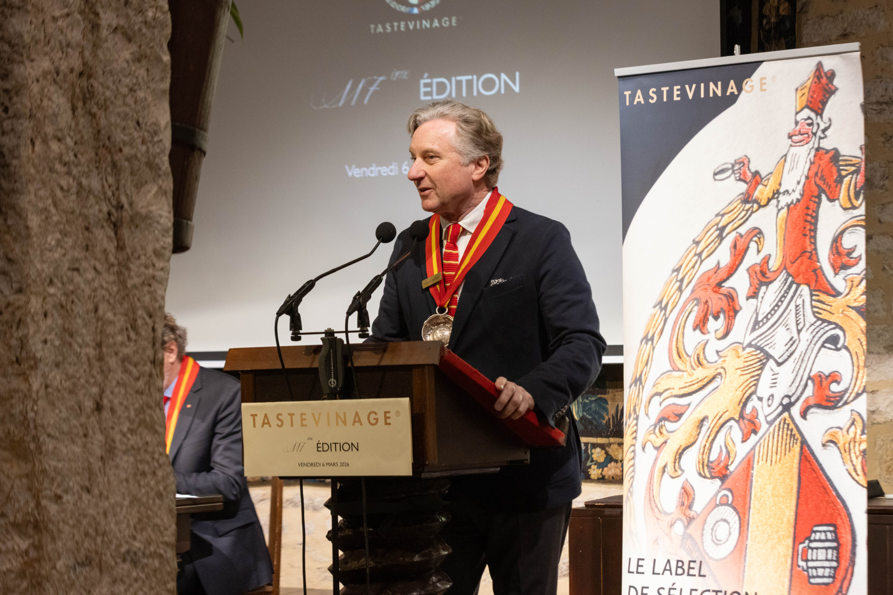 Au total, 170 jurés-dégustateurs se sont rassemblés ce vendredi 6 mars au Château du Clos de Vougeot pour la 117e édition du Tastevinage, placée sous le parrainage du philosophe Laurent de Sutter.