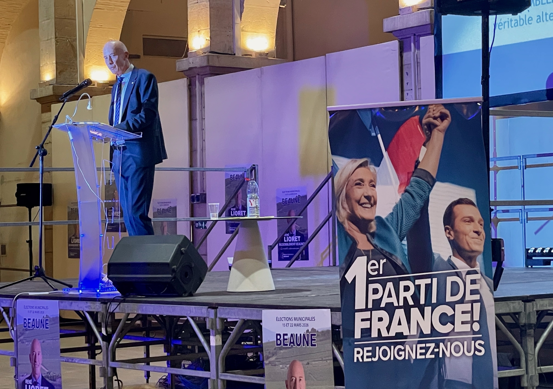 À quelques jours du premier tour des élections municipales, René Lioret, tête de liste du « Rassemblement Beaunois », a tenu son unique meeting de campagne ce mardi soir sous les Halles de Beaune. Devant environ 150 personnes, le député de la 5ᵉ circonscription de Côte-d’Or, soutenu par le Rassemblement National, a présenté son équipe et détaillé les grandes orientations de son programme municipal, très marqué par les questions de sécurité, de lutte contre les incivilités et de défense de l’identité locale.