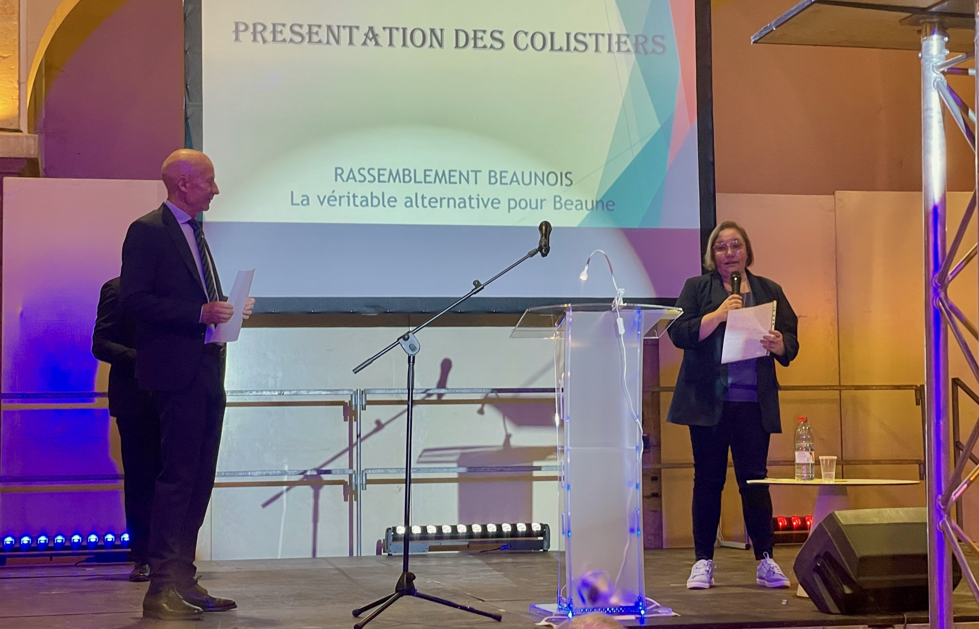 Dans une atmosphère attentive, René Lioret a pris la parole seul sur scène pour dérouler son discours. Le candidat a tenu à saluer l’engagement de ses 36 colistiers qui constituent sa liste "Rassemblement Beaunois". « Avant de commencer mon discours, je voudrais tout d’abord remercier mes 36 colistiers, 18 femmes et 18 hommes, qui m’ont rejoint dans cette candidature. » Des Beaunoises et des Beaunois de tous les quartiers, âgés de 18 à 80 ans, exerçant des professions variées.