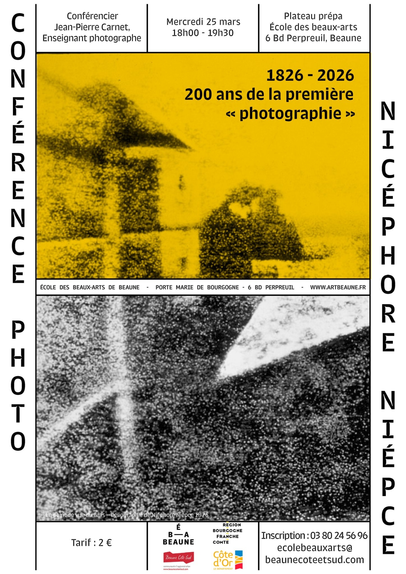 À l’occasion du bicentenaire de la première photographie, l’École des beaux-arts Beaune Côte et Sud propose une conférence exceptionnelle consacrée à l’histoire de cet art devenu universel. Intitulée « 1826-2026 – 200 ans de la première photographie », elle se tiendra le mercredi 25 mars, de 18 h à 19 h 30, sur le plateau Prépa de l’établissement.