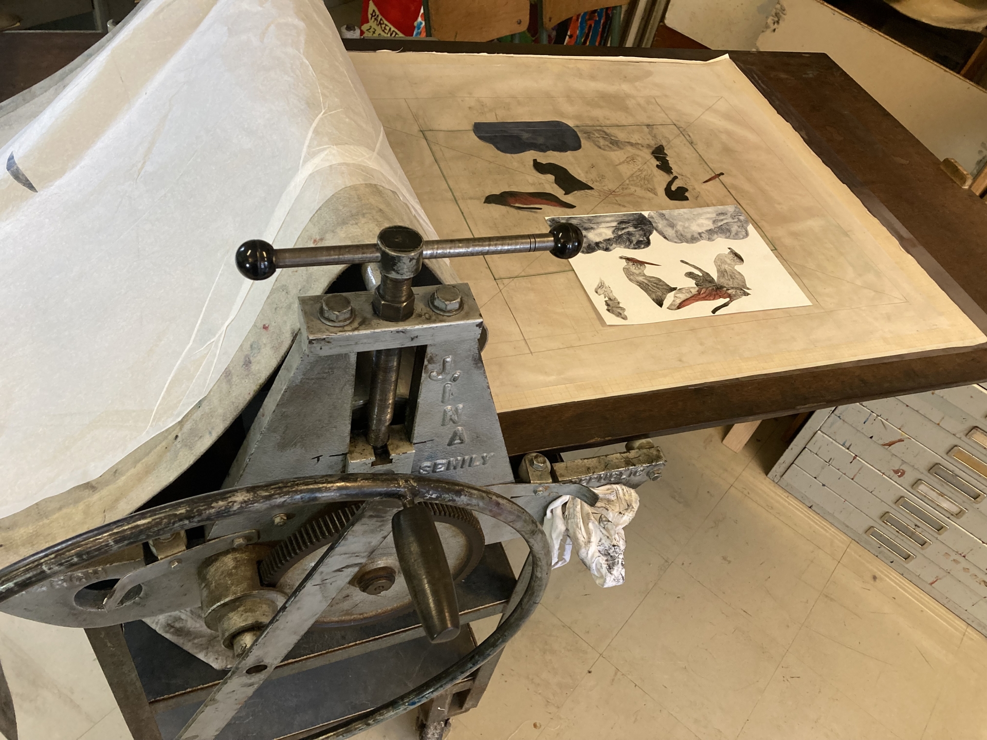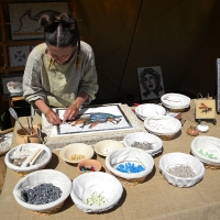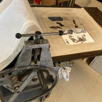 L’artiste plasticienne Adeline Piovoso coache les visiteurs pour réaliser une gravure représentant la mort de César, à partir d’un corpus d’œuvres du XVIe au XXe siècle. Ils repartiront avec une impression de cette gravure et la matrice gravée. Une impression sera conservée au musée et accrochée sur les cimaises de l’exposition « César, Tous les chemins mènent à Rome ».