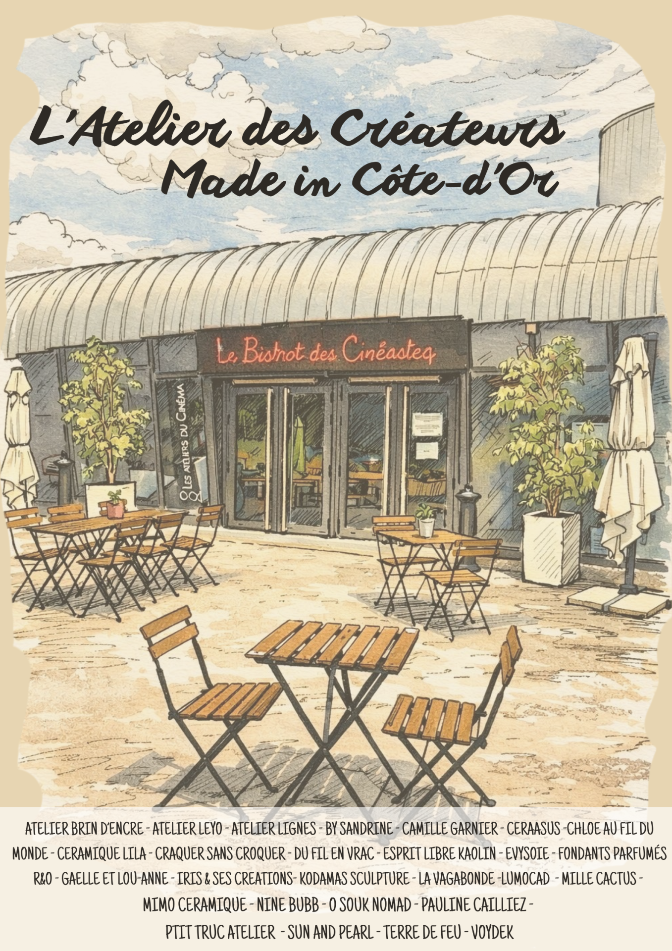Le samedi 18 avril, les Ateliers du Cinéma accueillent une journée placée sous le signe de la créativité et de la convivialité avec L’Atelier des Créateurs made in Côte-d’Or. Organisé par le ciné-club des Ateliers, cet événement gratuit invite le public à partir à la rencontre d’une vingtaine d’artisans et créateurs passionnés de la région.