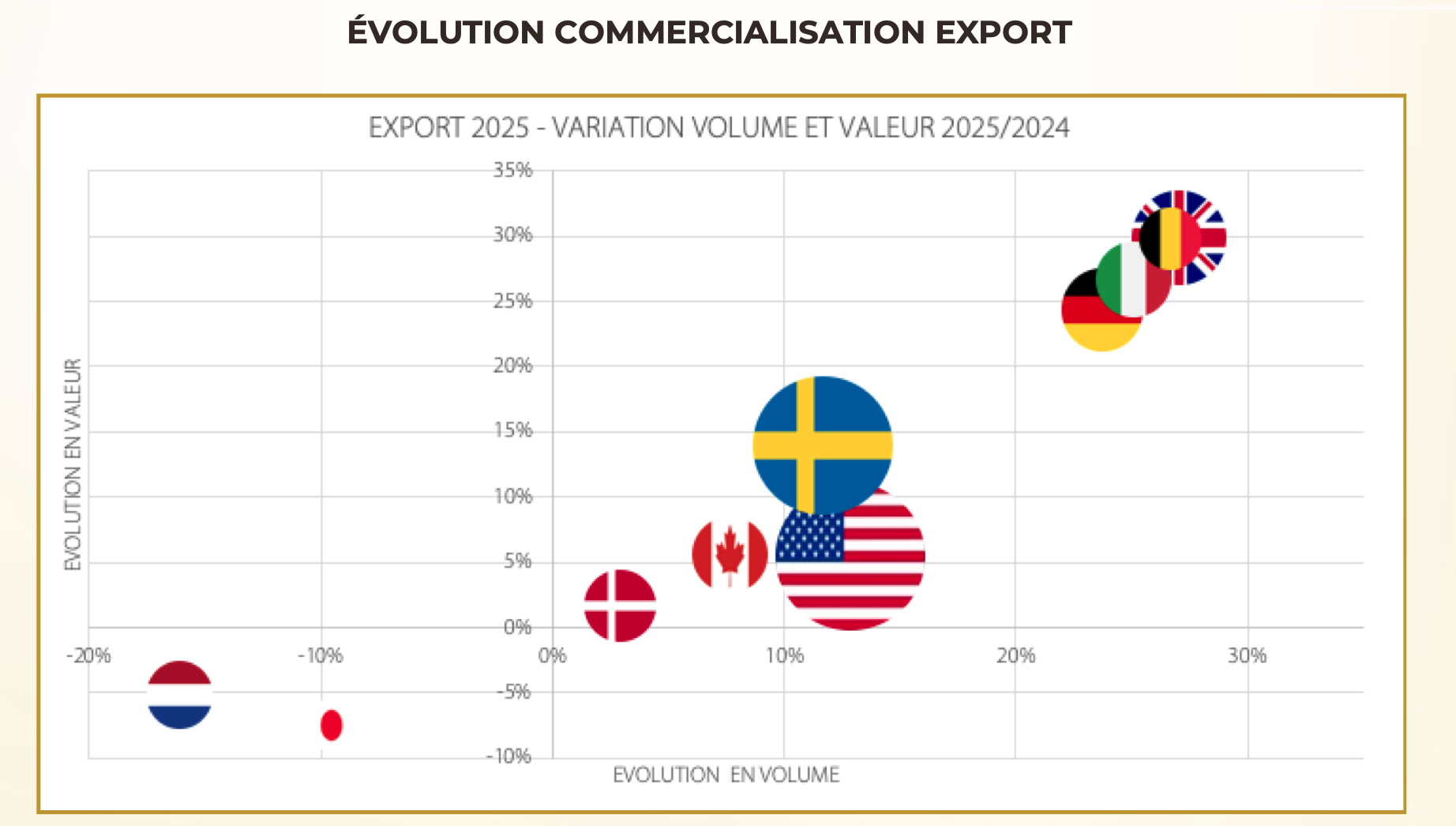 Seuls deux marchés enregistrent un léger repli (Pays-Bas et Japon), pour des raisons conjoncturelles identifiées.
