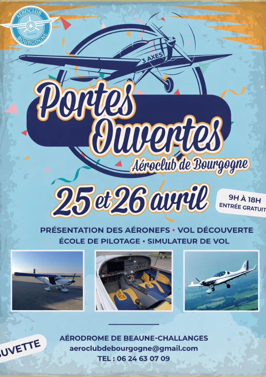 Les passionnés d’aviation, les curieux et les amateurs de sensations aériennes ont rendez-vous les 25 et 26 avril à l’aérodrome de Beaune‑Challanges. L’Aéroclub de Bourgogne y organise deux journées portes ouvertes destinées à faire découvrir au grand public les activités du club et l’univers du pilotage.