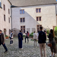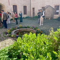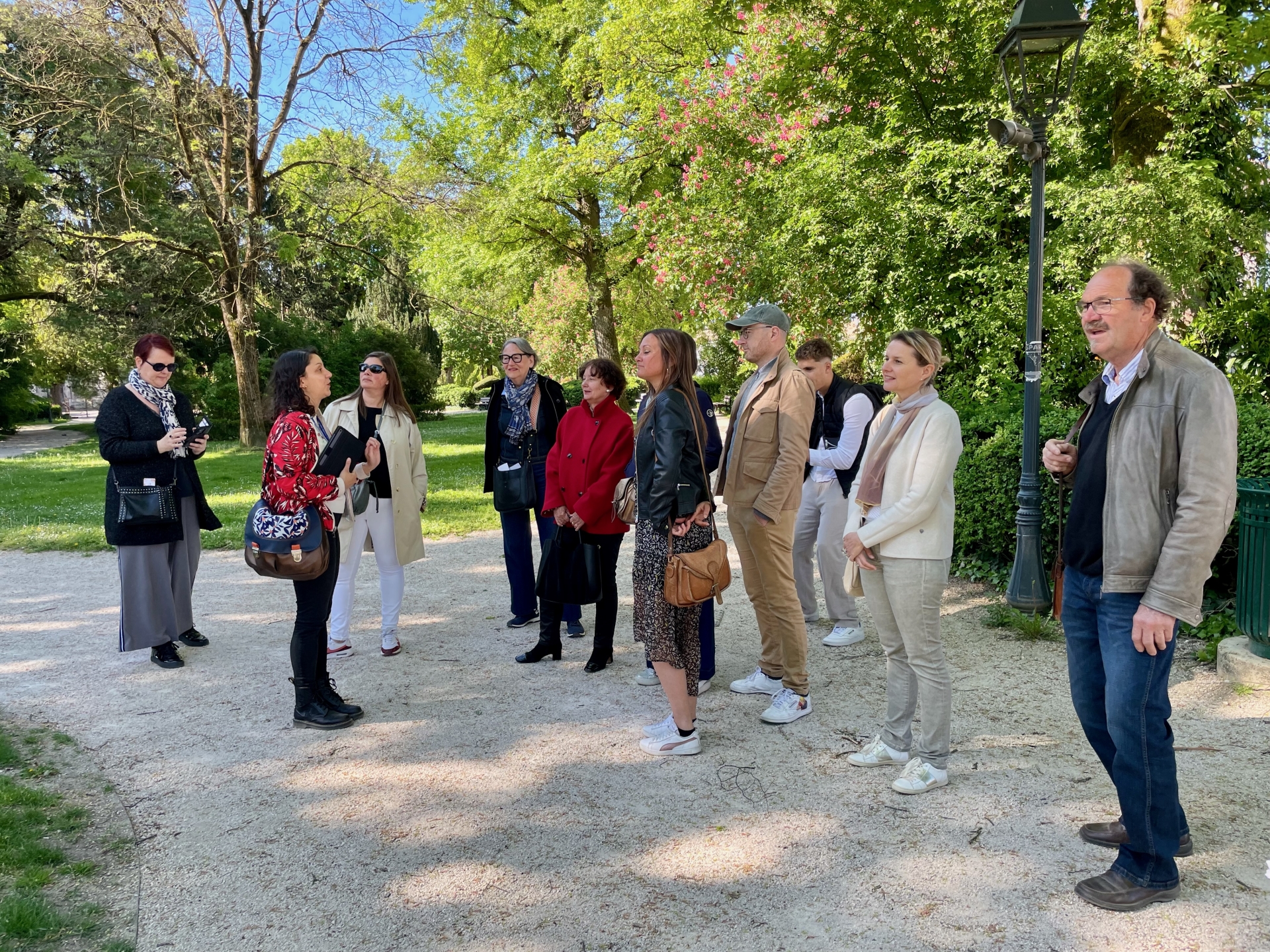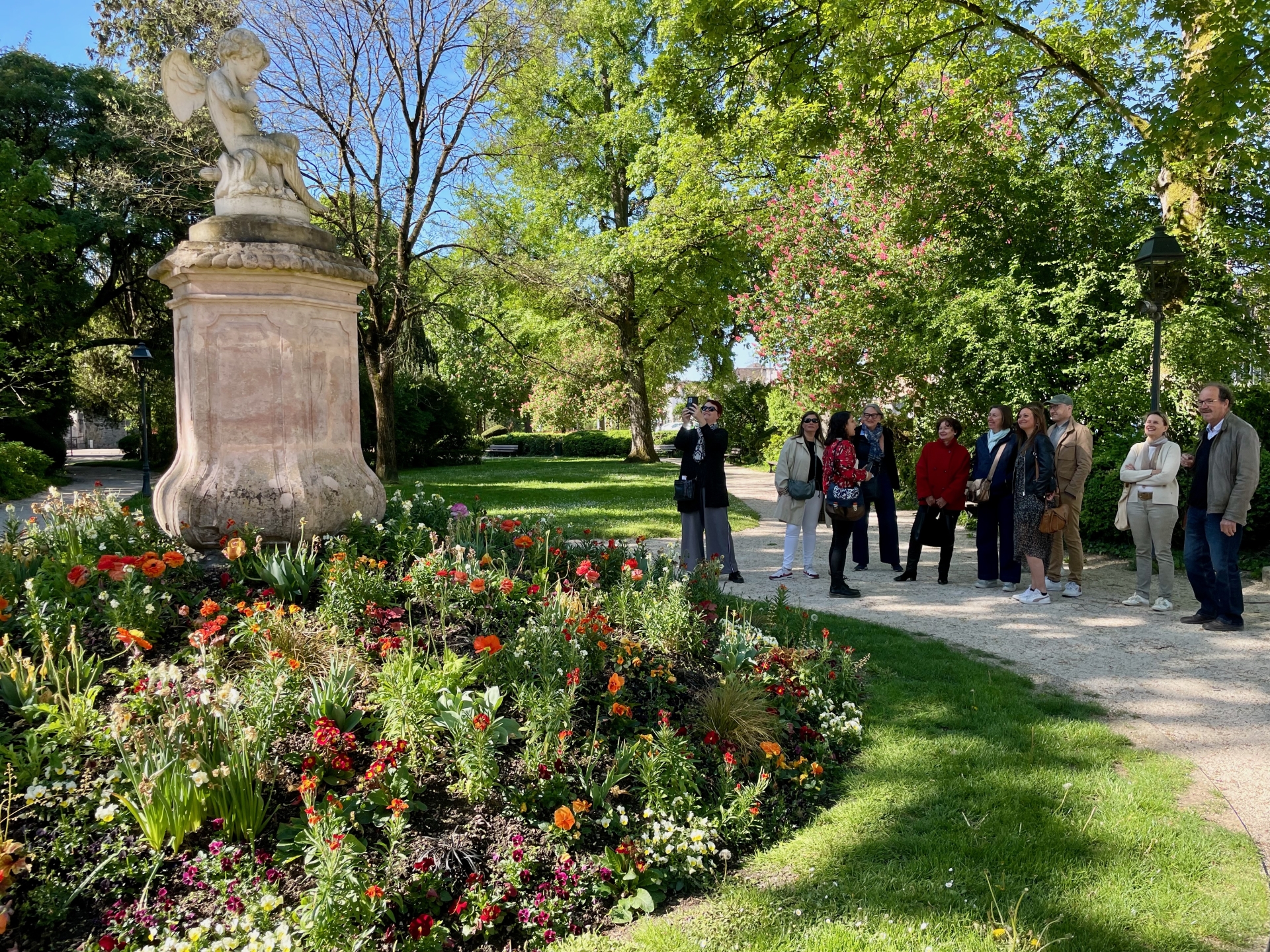 La visite alterne entre lieux emblématiques et espaces plus confidentiels. Parmi les étapes marquantes : le passage au pont des Oies, ancien point d’abreuvement pour les chevaux ; le square des Lions, aménagé sur le bastion Saint-Martin ; la cour intérieure de la Bibliothèque Gaspard Monge, ancien couvent des Minimes ou encore le jardin de l’Hôtel Boussard de la Chapelle, ancien site de la Banque de France.