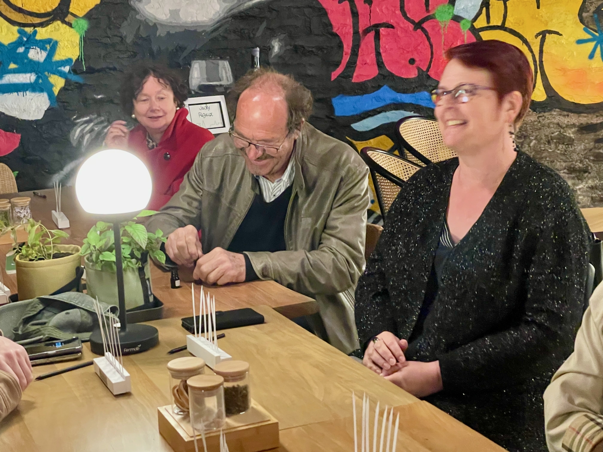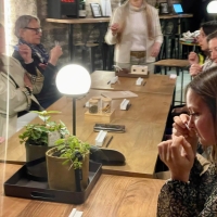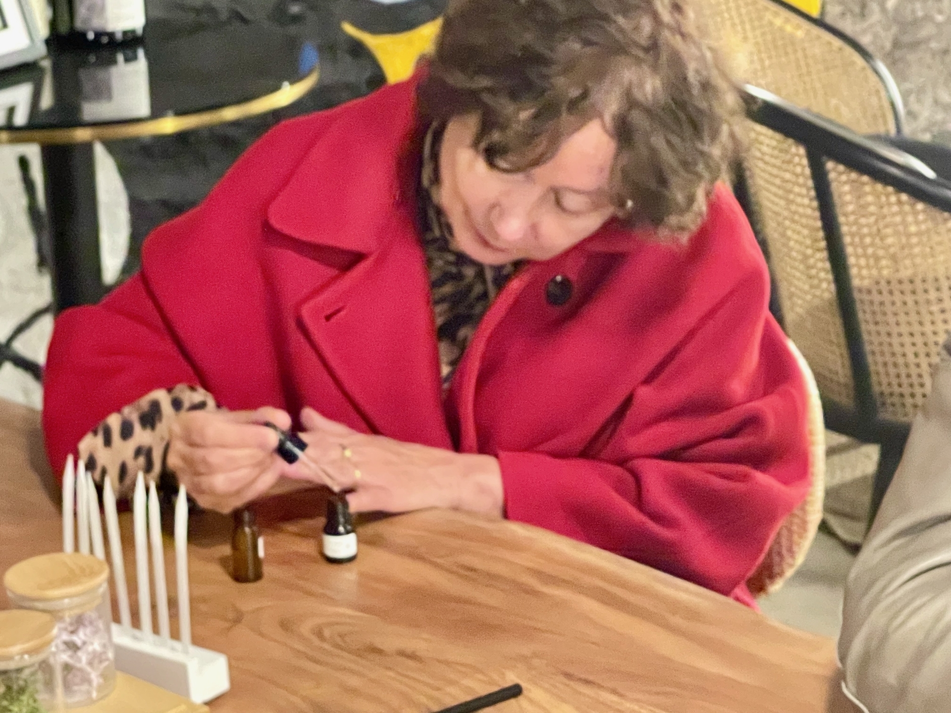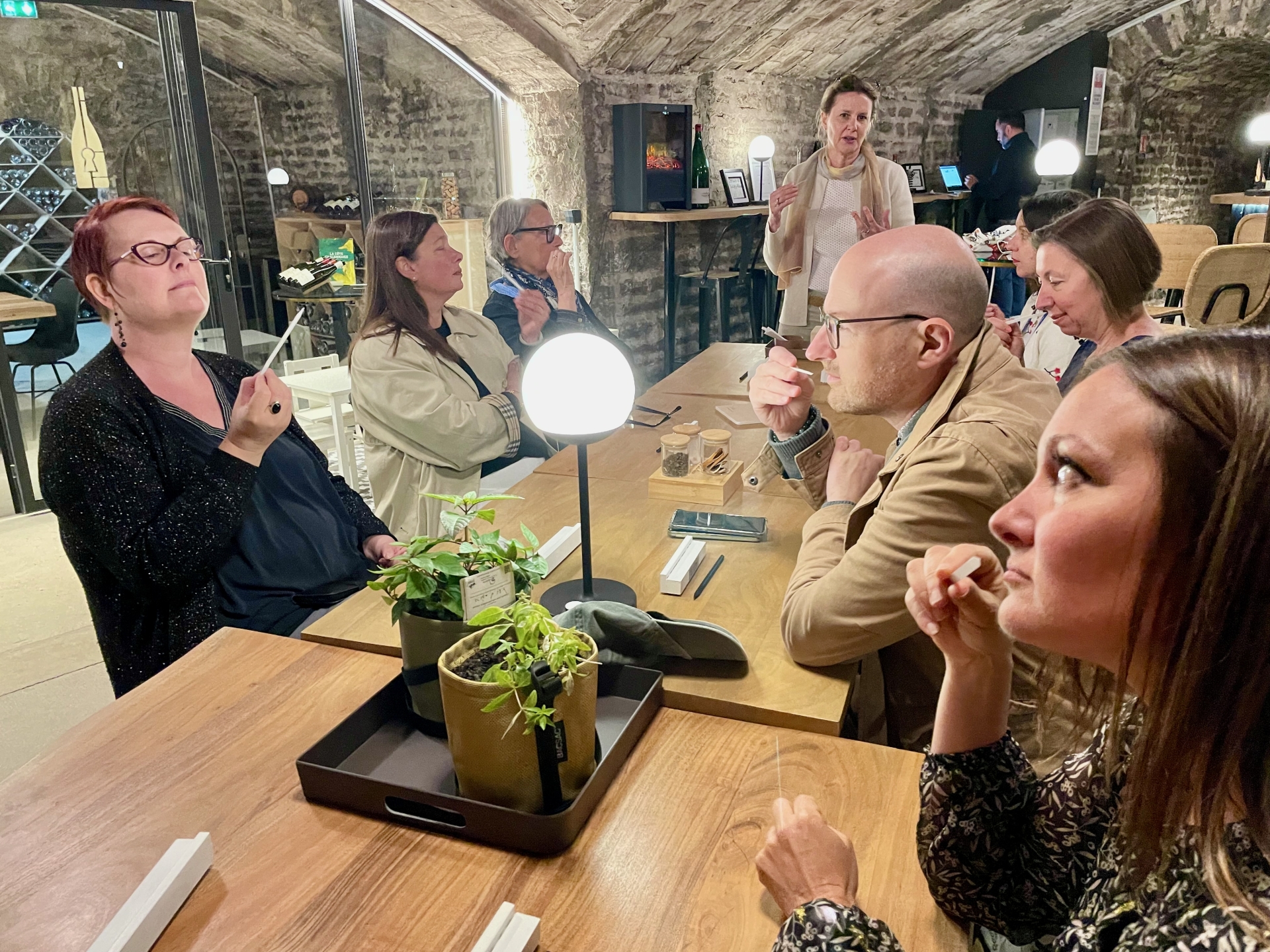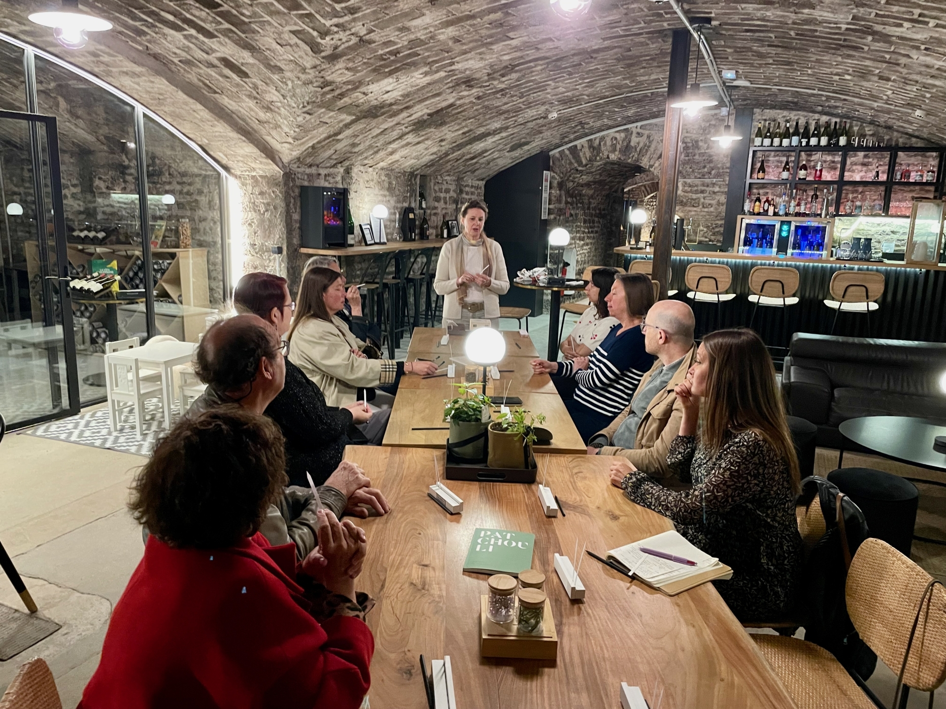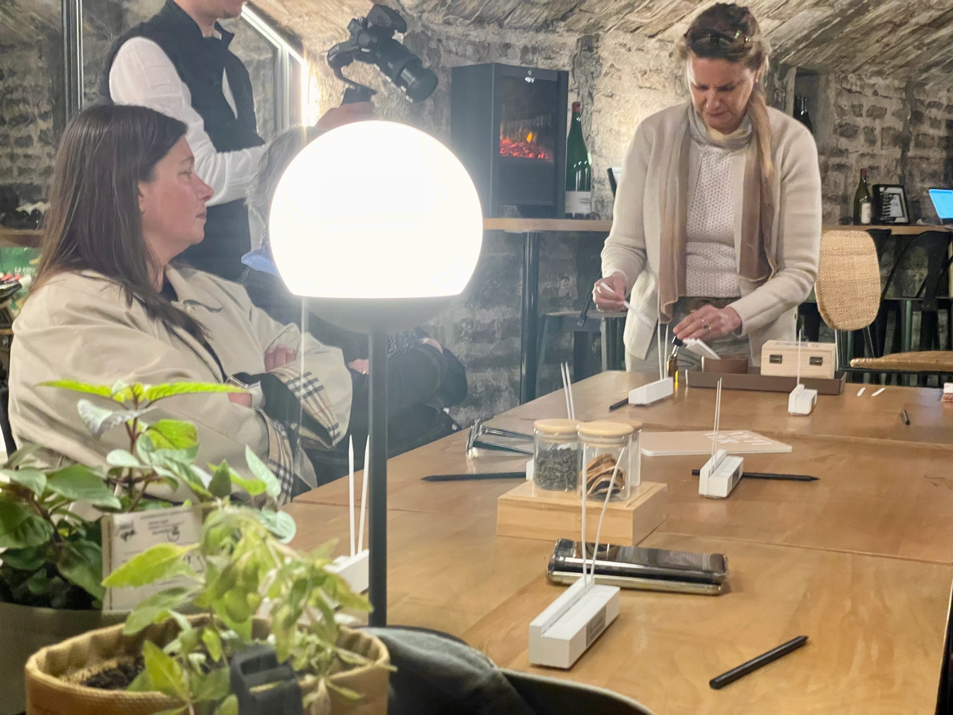 À l’issue de la balade, les participants rejoignent un lieu partenaire – comme l’Hôtel Solstice, ancienne distillerie – pour un atelier animé par Marie-France Bravard. Originaire de Beaune et formée notamment à Grasse puis dans les grandes marques de parfum, elle propose une initiation à la parfumerie inspirée du parcours effectué. « L’idée est de prolonger la visite en sollicitant la mémoire olfactive des lieux emblématiques visités », explique-t-elle. Six accords sont présentés aux participants, - six lectures personnelles à Marie-France selon son ressenti des différents depuis son enfance -, chacun correspondant à une ambiance ou un lieu traversé : notes aromatiques (plantes, jardins), accords aquatiques (la rivière), notes florales, touches boisées, accords cuirés ou encore notes plus abstraites, métalliques ou épicées…