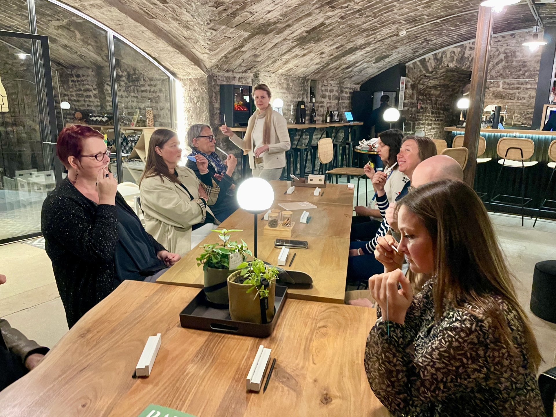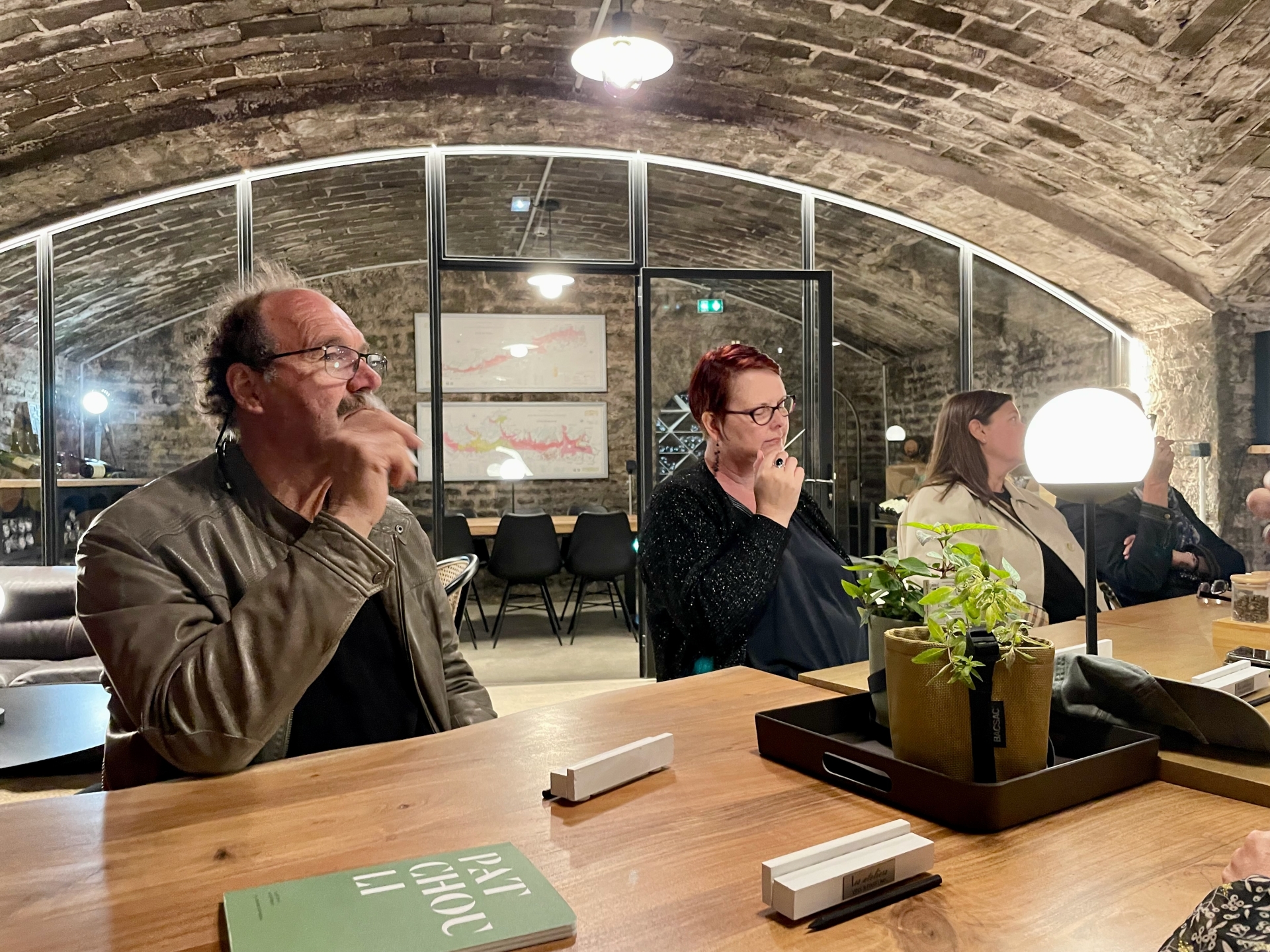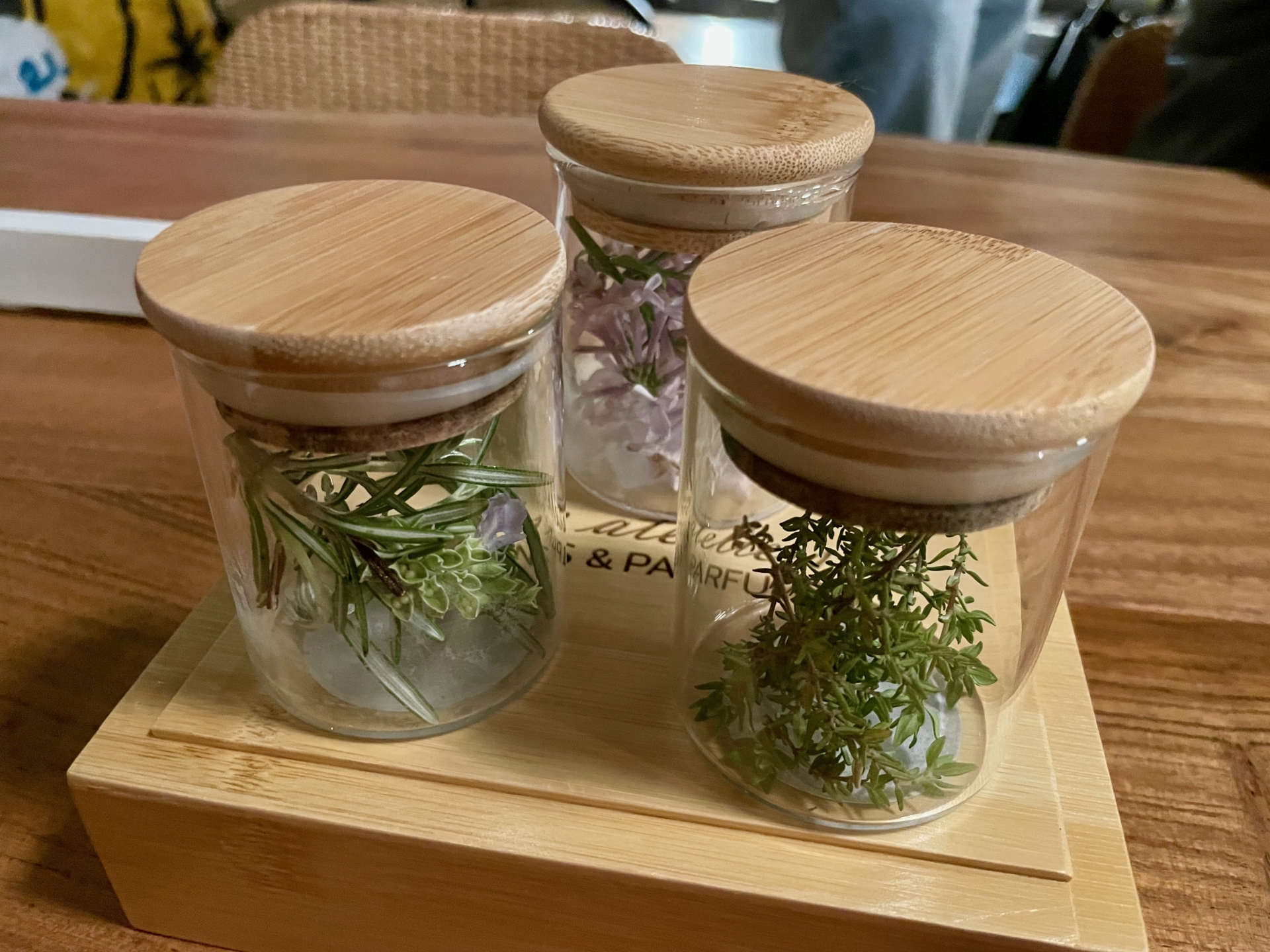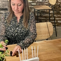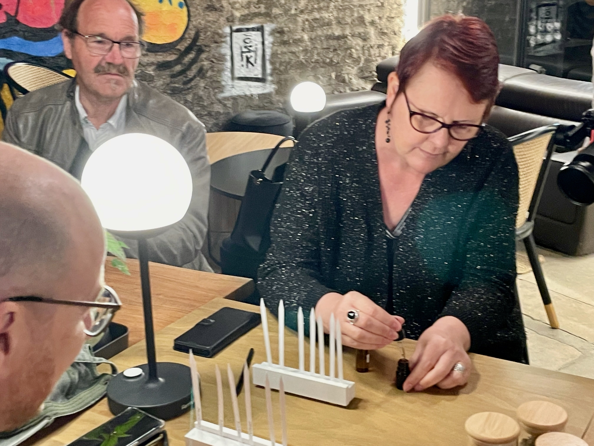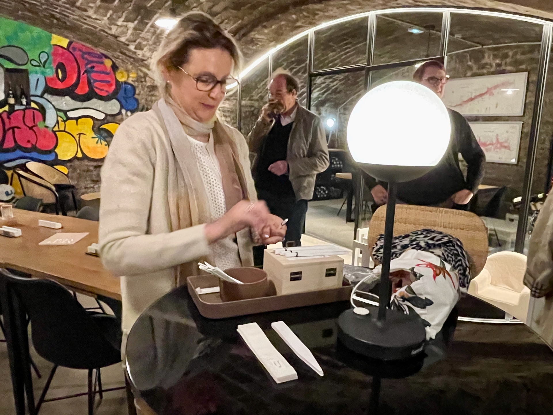 À l’issue de la balade, les participants rejoignent un lieu partenaire – comme l’Hôtel Solstice, ancienne distillerie – pour un atelier animé par Marie-France Bravard. Originaire de Beaune et formée notamment à Grasse puis dans les grandes marques de parfum, elle propose une initiation à la parfumerie inspirée du parcours effectué. « L’idée est de prolonger la visite en sollicitant la mémoire olfactive des lieux emblématiques visités », explique-t-elle. Six accords sont présentés aux participants, - six lectures personnelles à Marie-France selon son ressenti des différents depuis son enfance -, chacun correspondant à une ambiance ou un lieu traversé : notes aromatiques (plantes, jardins), accords aquatiques (la rivière), notes florales, touches boisées, accords cuirés ou encore notes plus abstraites, métalliques ou épicées…