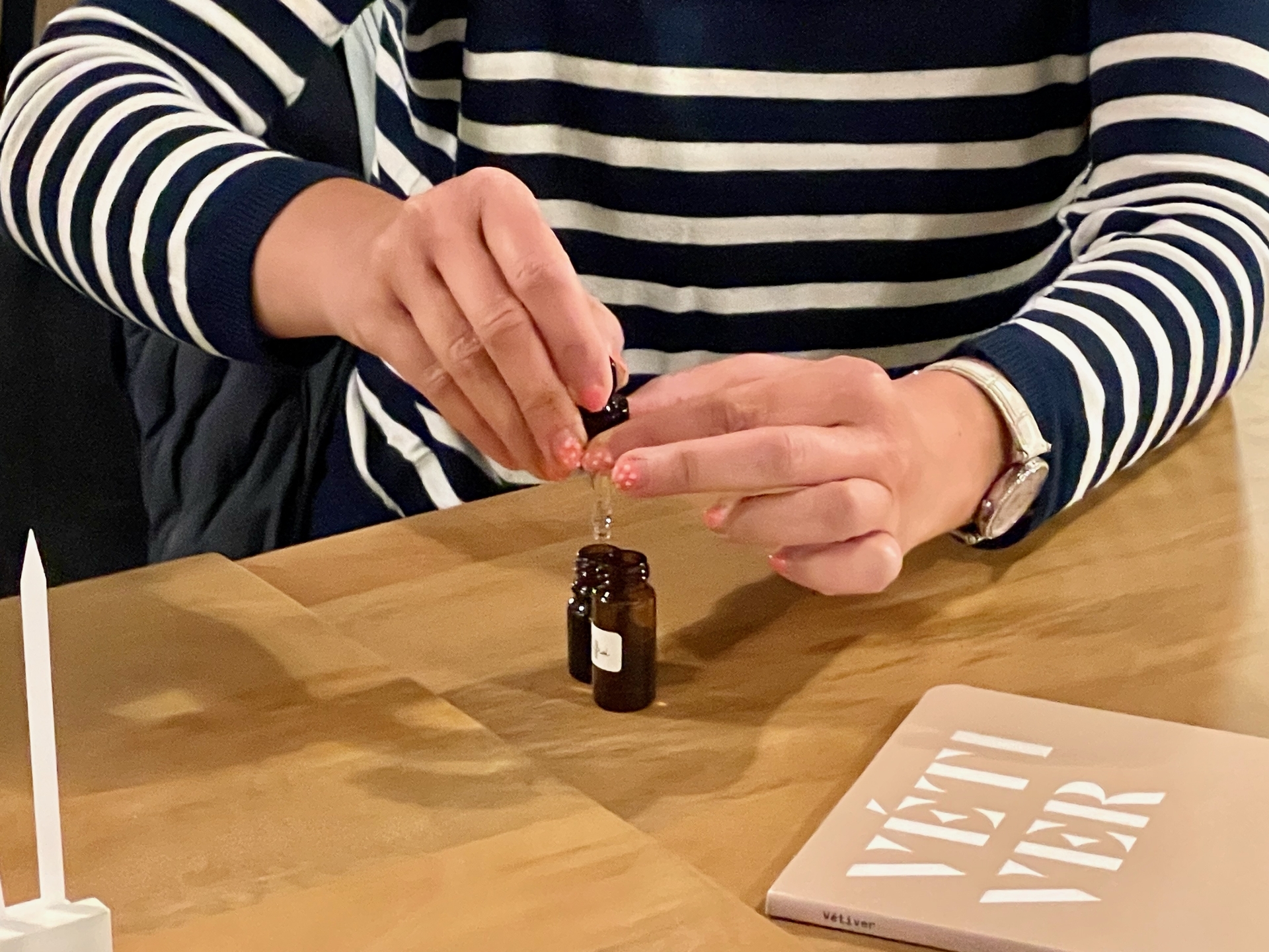 L’atelier permet également d’aborder les bases de la parfumerie : distinction entre notes de tête, de cœur et de fond pour visualiser comment un parfum évolue au fil du temps sur la peau, les méthodes d’extraction des matières premières (distillation, pression à froid…), la différence entre parfums naturels et synthétiques ou encore la notion de seuil de perception. À l’aide de mouillettes, les participants apprennent à reconnaître, comparer et mémoriser les odeurs. Puis vient le temps de la création. Chacun compose son propre « parfum de Beaune », en fonction de son ressenti du parcours. Une manière concrète de traduire une expérience en signature olfactive.