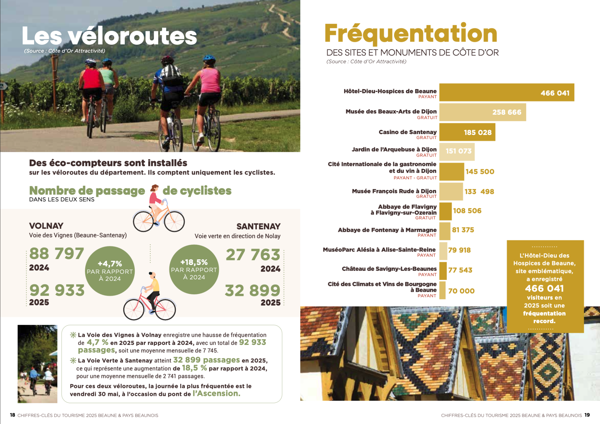 Les chiffres 2025 confirment la solidité du modèle touristique de Beaune & Pays Beaunois avec une fréquentation élevée et stable, une montée en puissance du numérique, un ancrage international renforcé, une mobilité douce en plein essor et une stratégie financière tournée vers le réinvestissement local