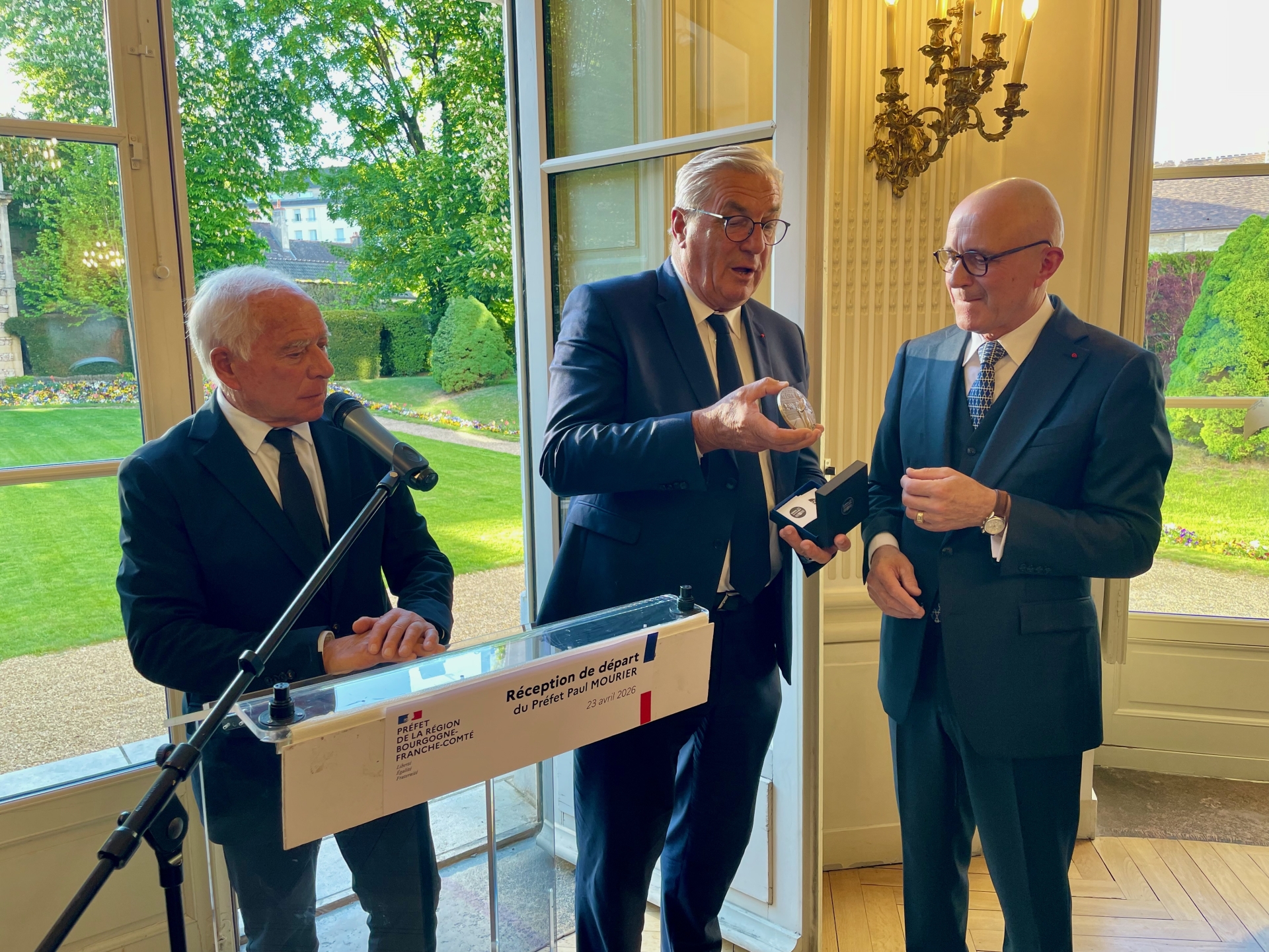 Dans les salons feutrés de la préfecture de région à Dijon, l’émotion était palpable ce jeudi soir. Sous les lustres des salons officiels, près de 200 personnalités politiques, institutionnelles, militaires et civiles s’étaient réunies pour saluer le départ de Paul Mourier, préfet de la région Bourgogne-Franche-Comté et préfet de la Côte-d'Or, qui quittera officiellement ses fonctions le 27 avril pour prendre sa retraite.